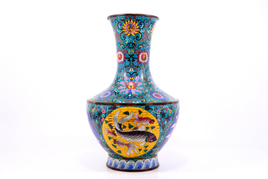 A Perfect Pair of Cloisonné Floral Fish Pattern Bottles