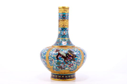 A perfect pair of cloisonné 'cloud and unicorn' patterned vases