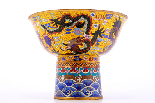 An exquisite cloisonne auspicious cloud and dragon pattern bowl
