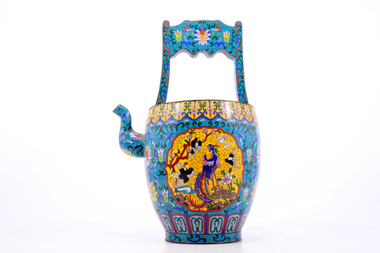 A perfect pair of cloisonné 'Twinkle lotus and Phoenix' patterned ewers