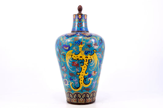 A perfect pair of cloisonne lotus and phoenix pattern jars with lids