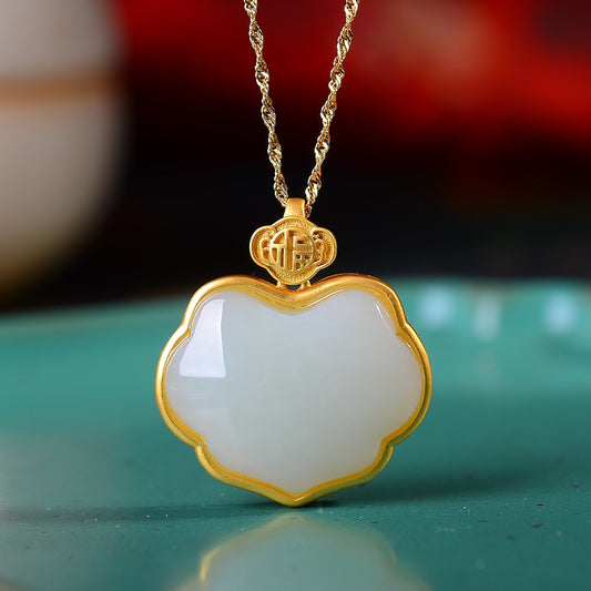Silver gilt inlaid Hetian jade Ruyi lock pendant