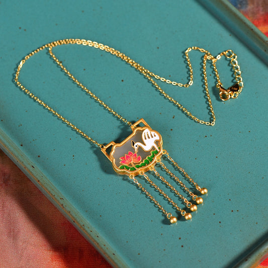 Silver gilt inlaid Hetian jade enamel Ruyi lock pendant
