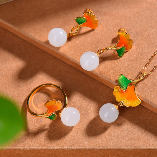 Silver gilt inlaid Hetian jade enamel safety buckle set