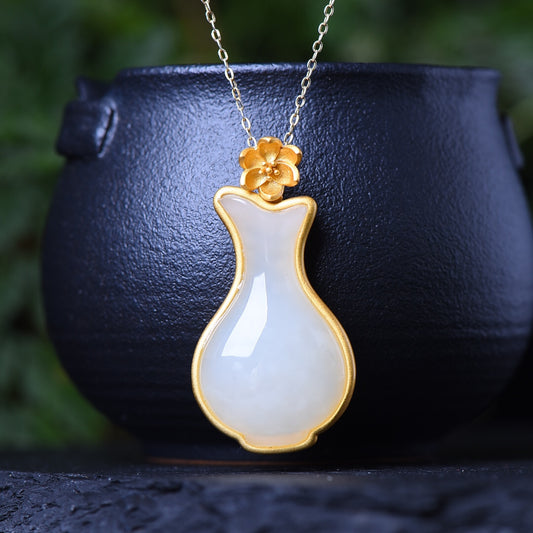 Gilt silver inlaid Hetian jade vase pendant