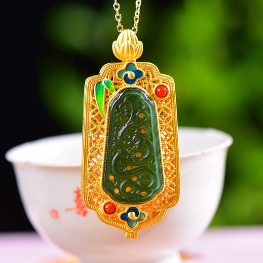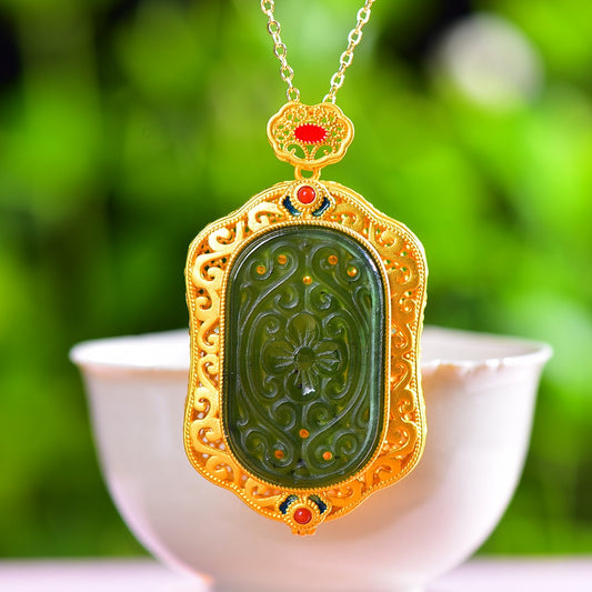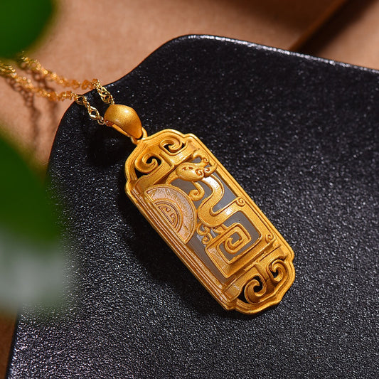 Gilt silver inlaid Hetian jade pendant