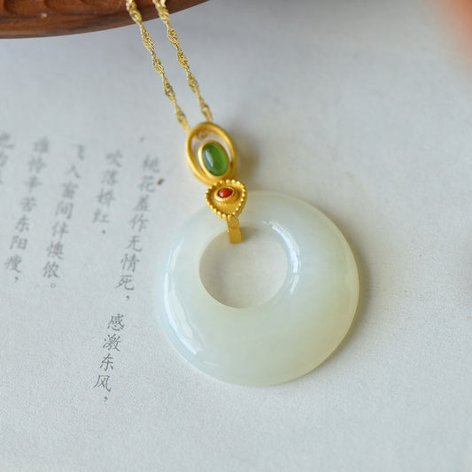 Gilt silver inlaid Hetian jade peace ring pendant