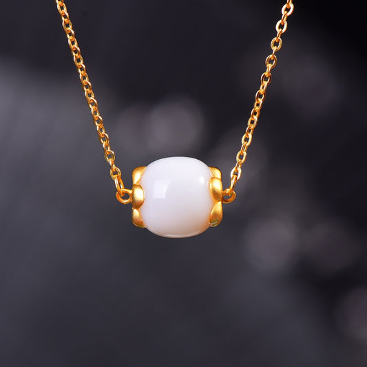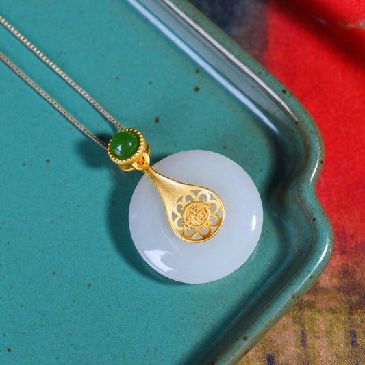 Gilt silver inlaid Hetian jade peace buckle pendant