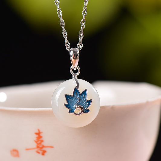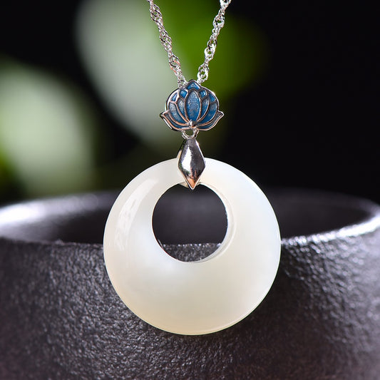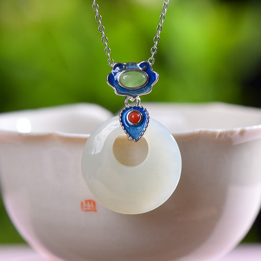 Silver inlaid Hetian jade enamel peace buckle pendant
