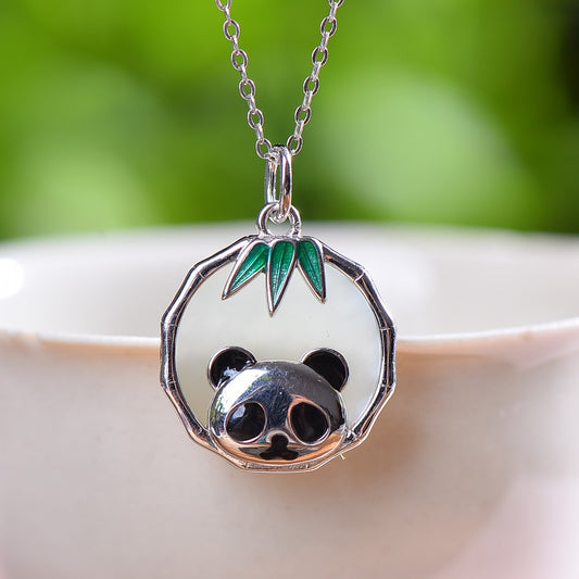 Silver inlaid Hetian jade enamel flat Fulu pendant
