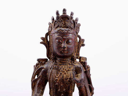 Brilliant Gold-Painted Bronze Figure Of Bodhisattva