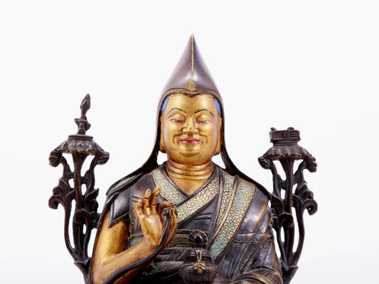 Brilliant Gilt-Bronze Silver-Inlaid Figure Of Tsongkapa With Inscriptions
