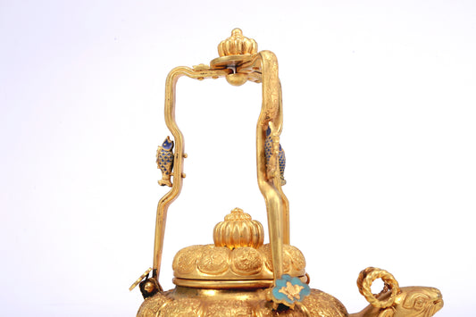 Fantastic Gilt-Bronze 'Scrolling Lotus' Ewer With A Ram-Form Spout