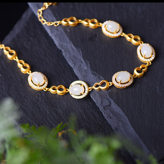 Gilt silver inlaid Hetian jade egg bracelet