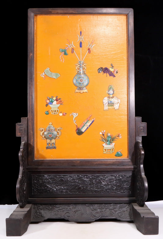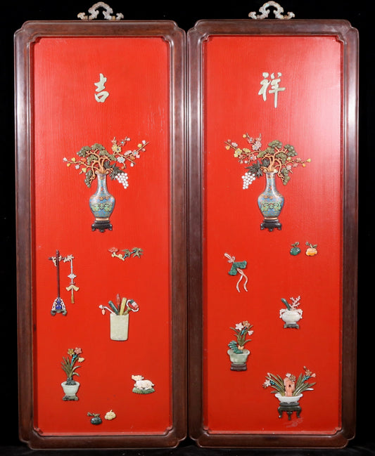 A set of exquisite zitanwood lacquered and inlaid gemstone vases with four hanging screens