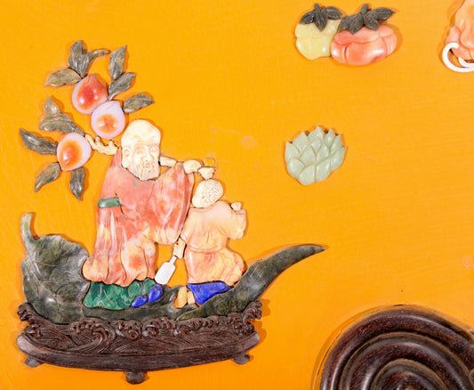A set of four hanging screens filled with lacquer and painted landscapes and figures inlaid with gemstones