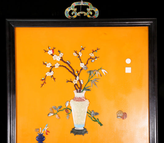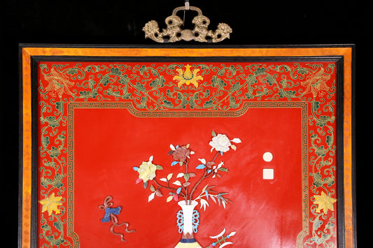 An exquisite gilded lacquered hanging screen with treasure pictures inlaid with precious stones