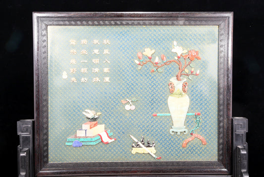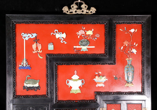 An exquisite zitanwood lacquered and gem-inlaid treasure map hanging screen