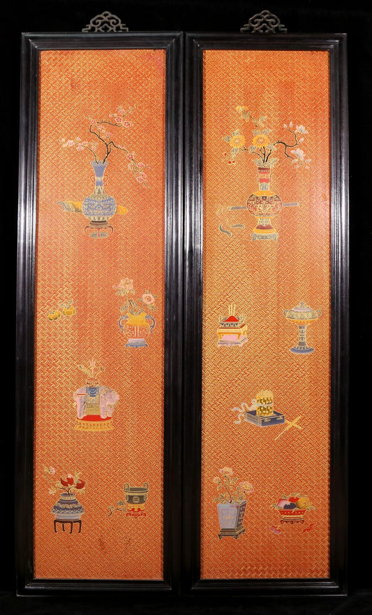 A set of exquisite zitanwood gold-filled lacquered treasure pictures with four hanging screens