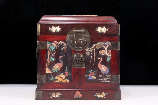 A perfect pair of huanghuali wood cabinets with inlaid gems and flower and bird patterns