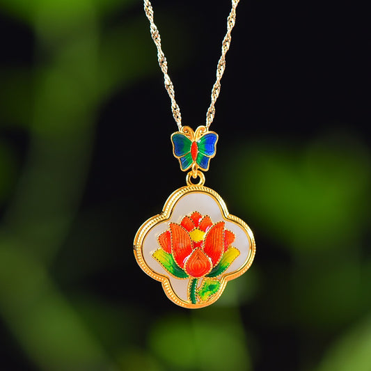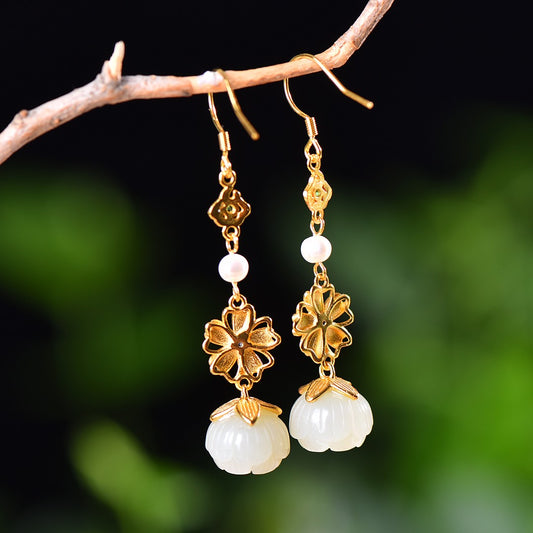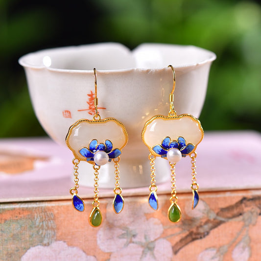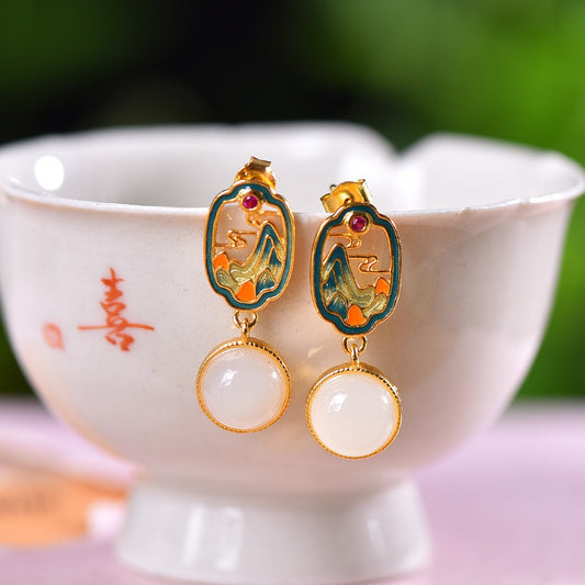 Silver gold-plated inlaid Hetian jade and multi-treasure earrings