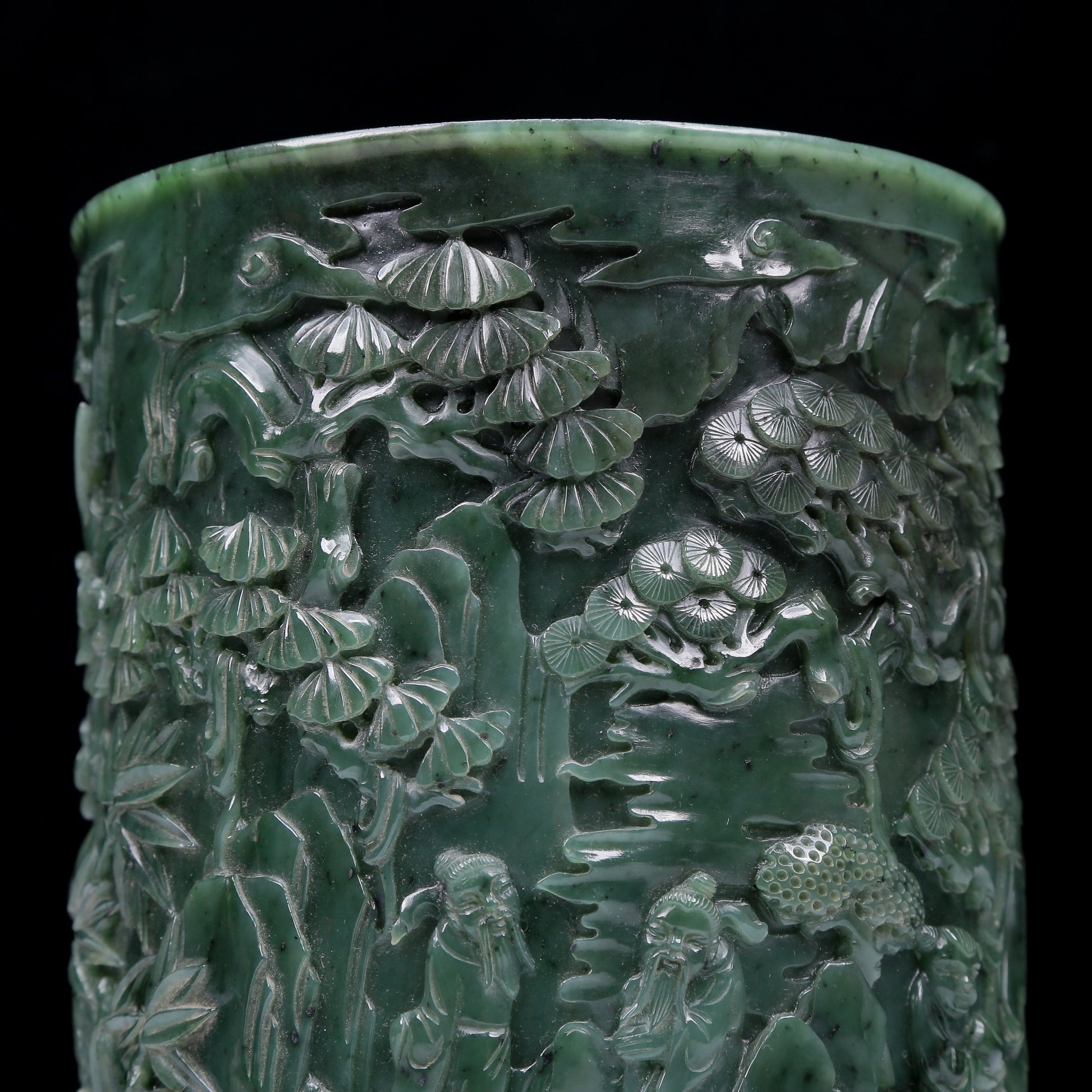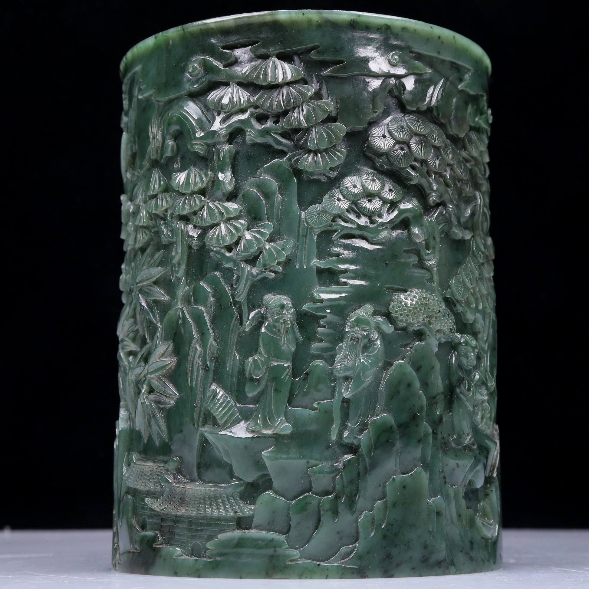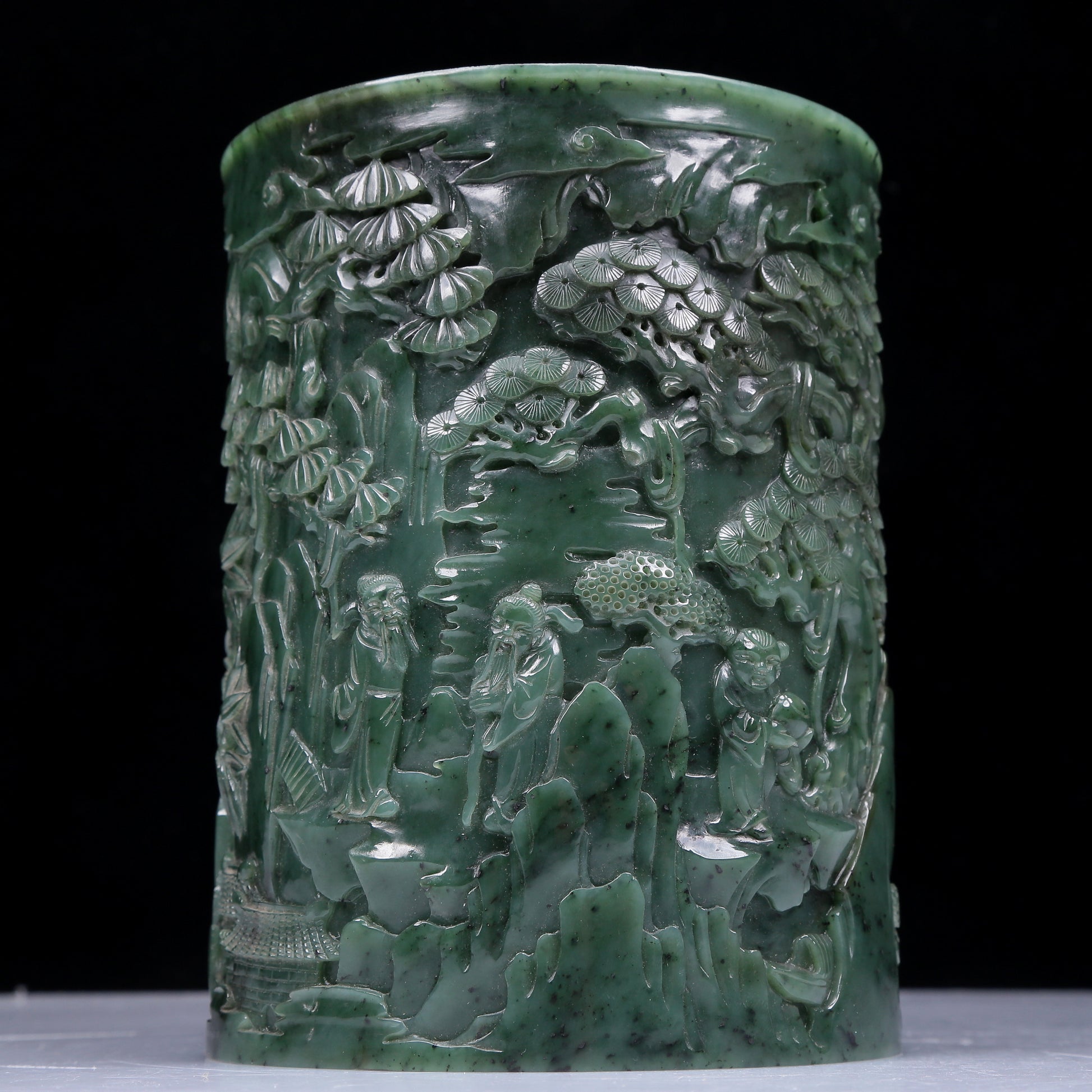 A Precious Jasper 'Figure& Landscape' Brush Pot