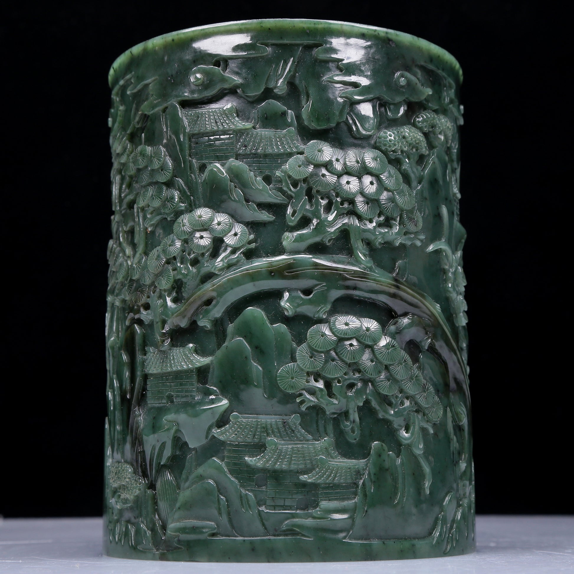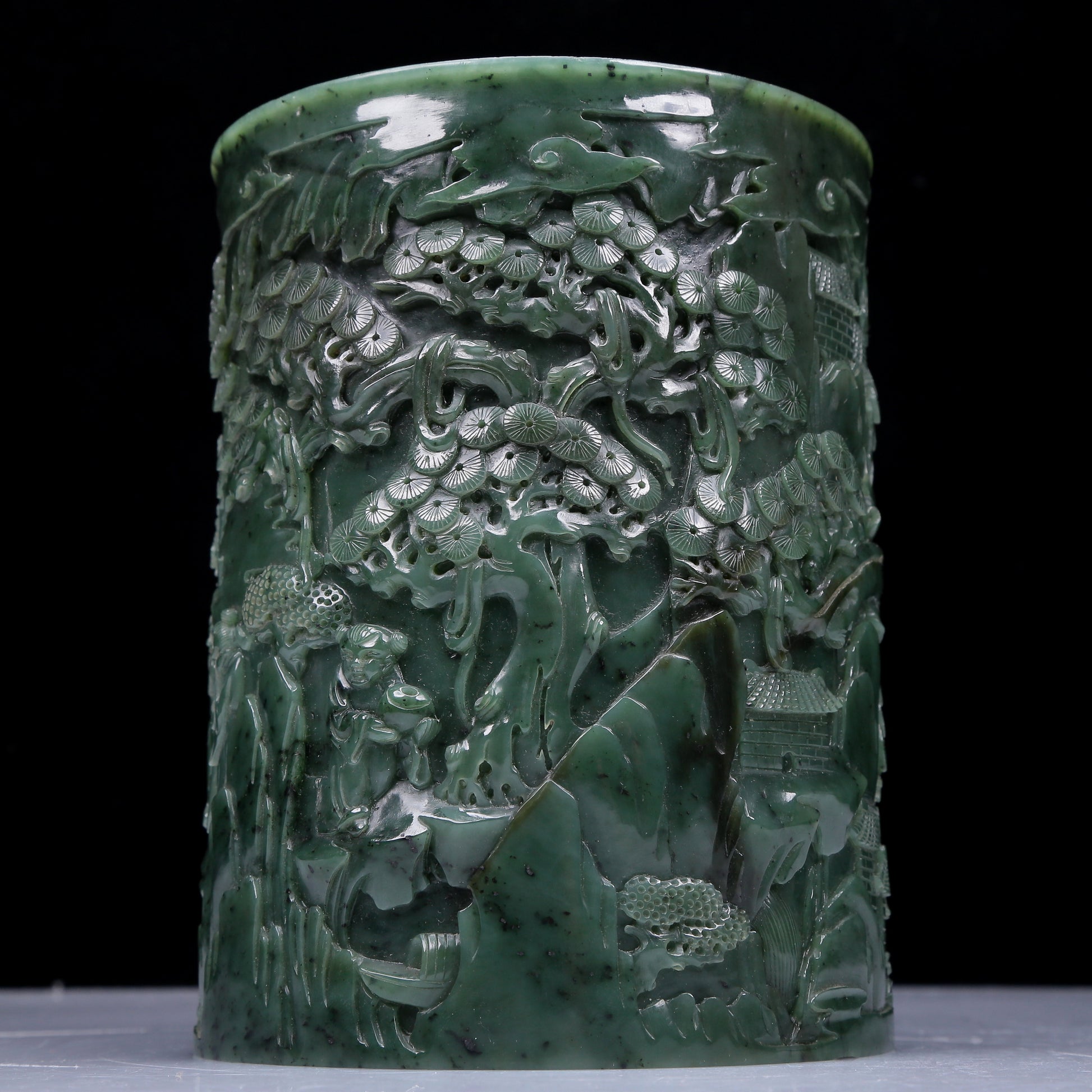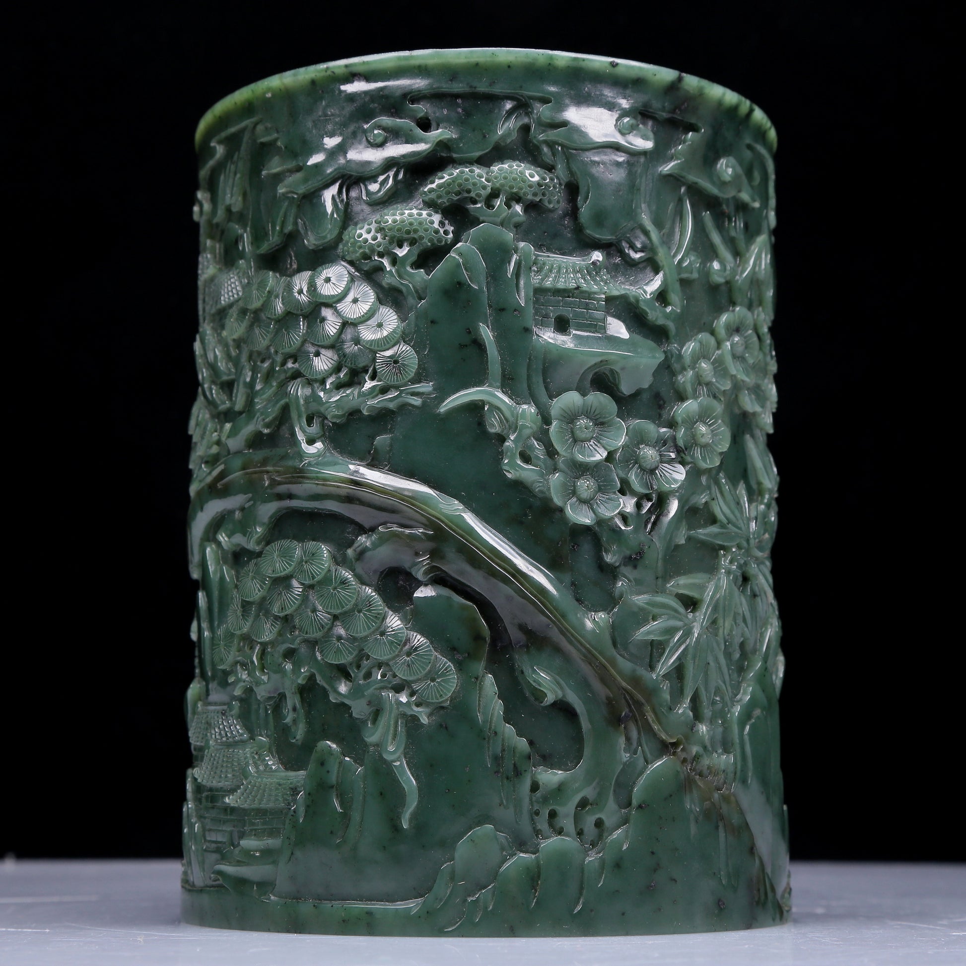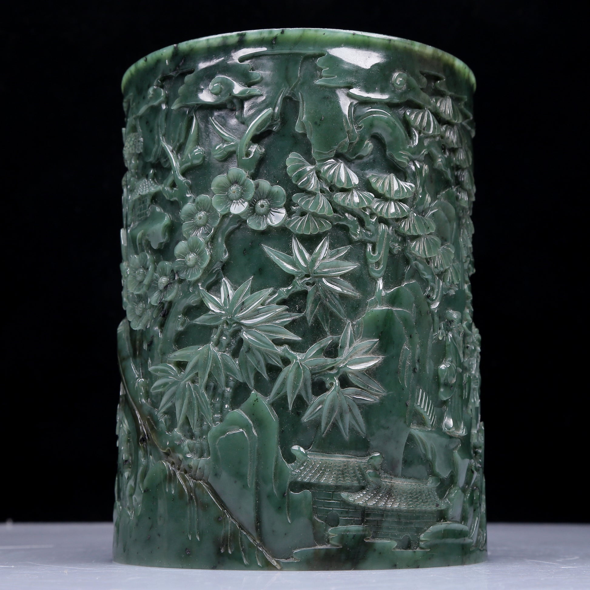 A Precious Jasper 'Figure& Landscape' Brush Pot