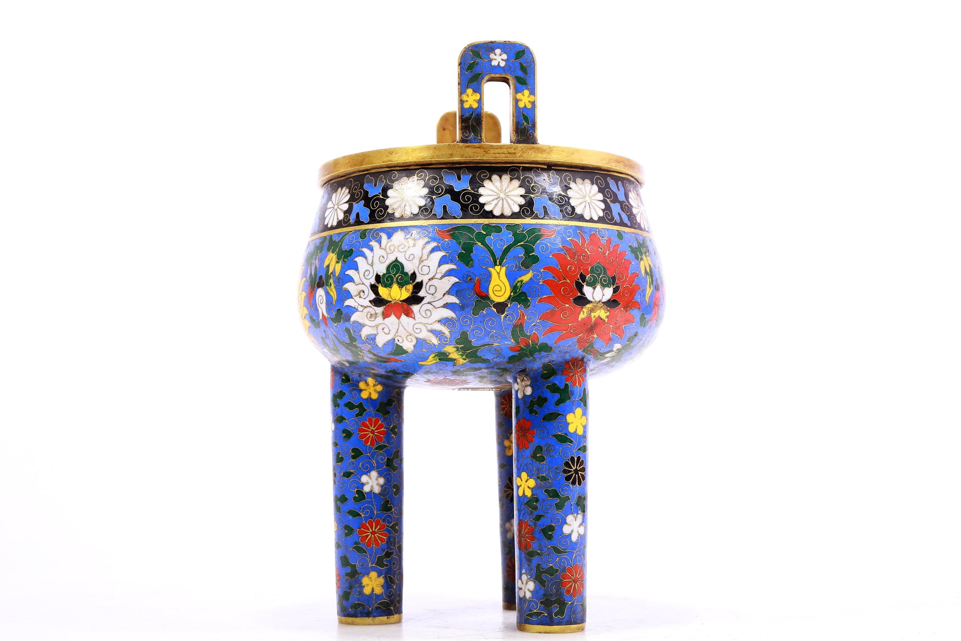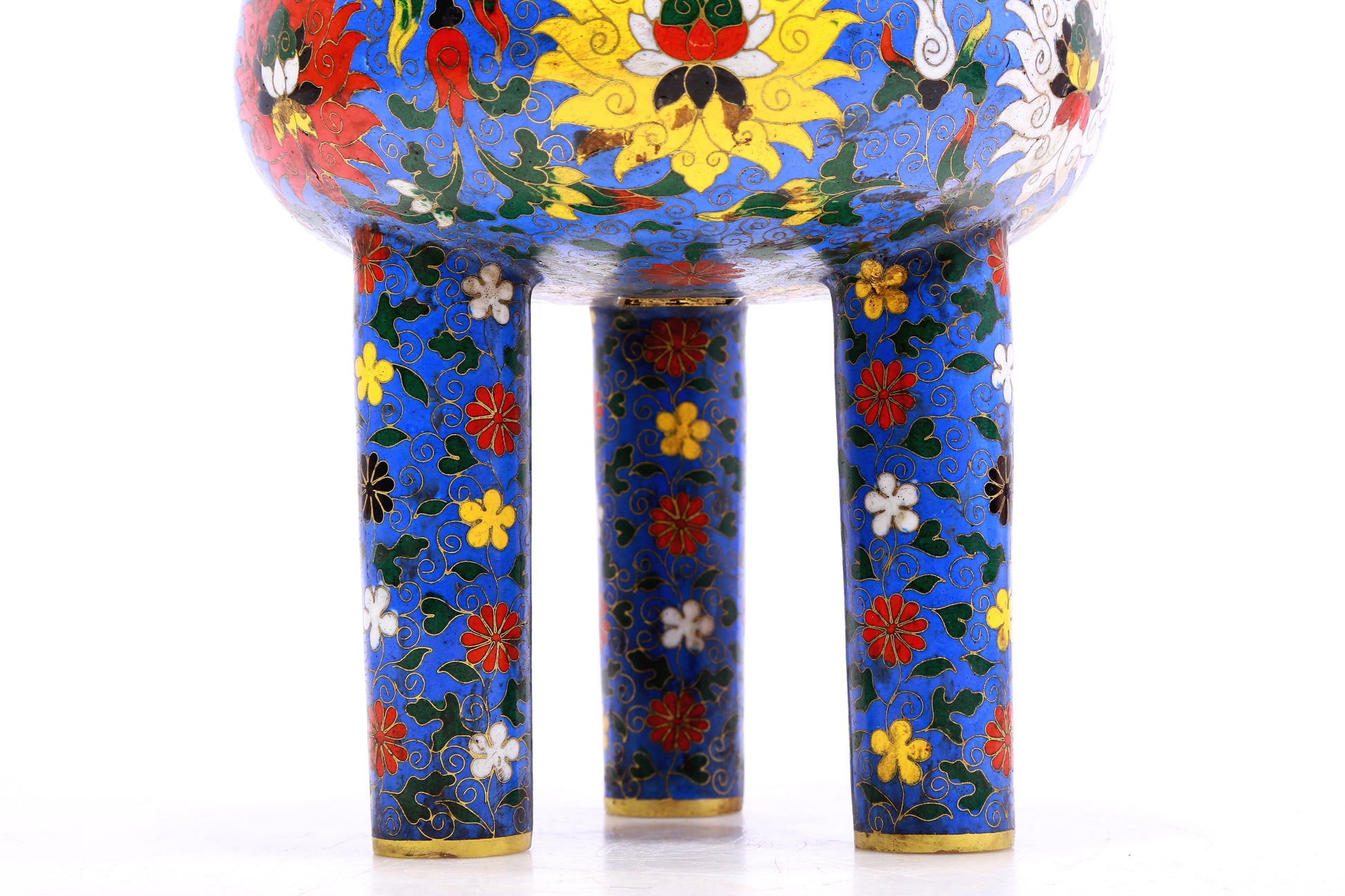 A Superb Cloisonne 'Scrolling Lotus' Tripod Censer