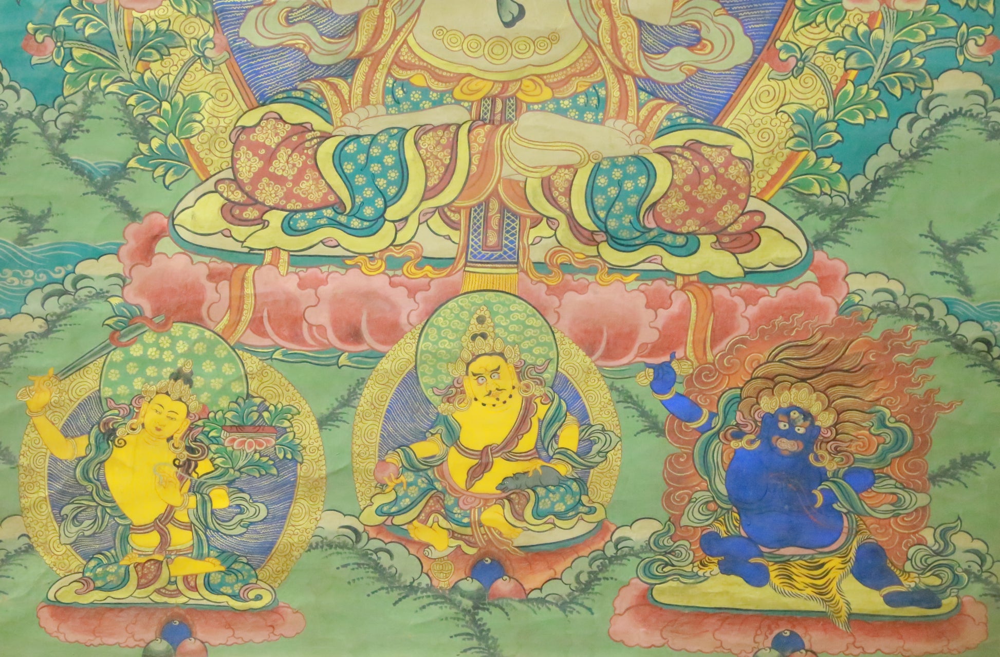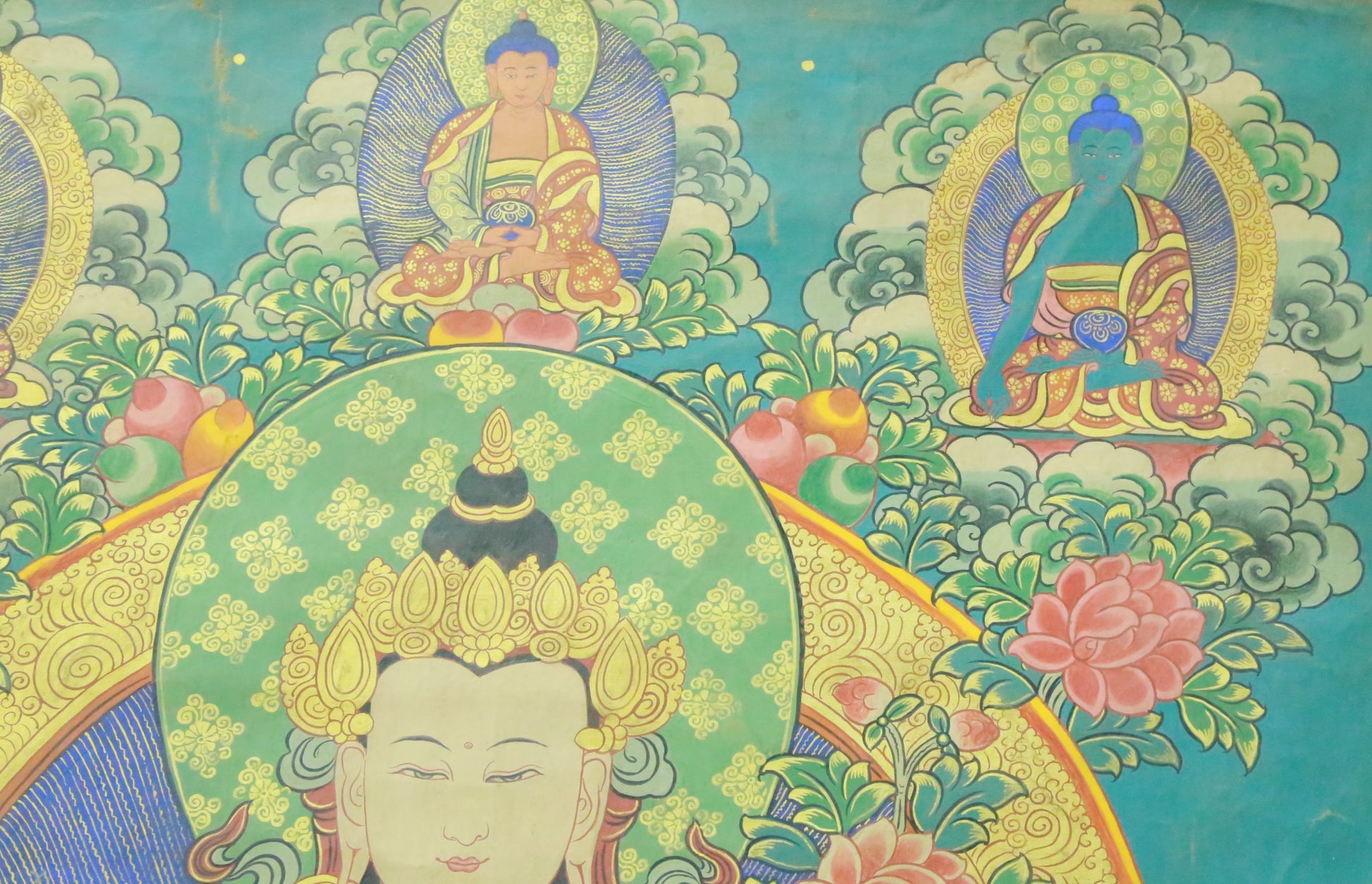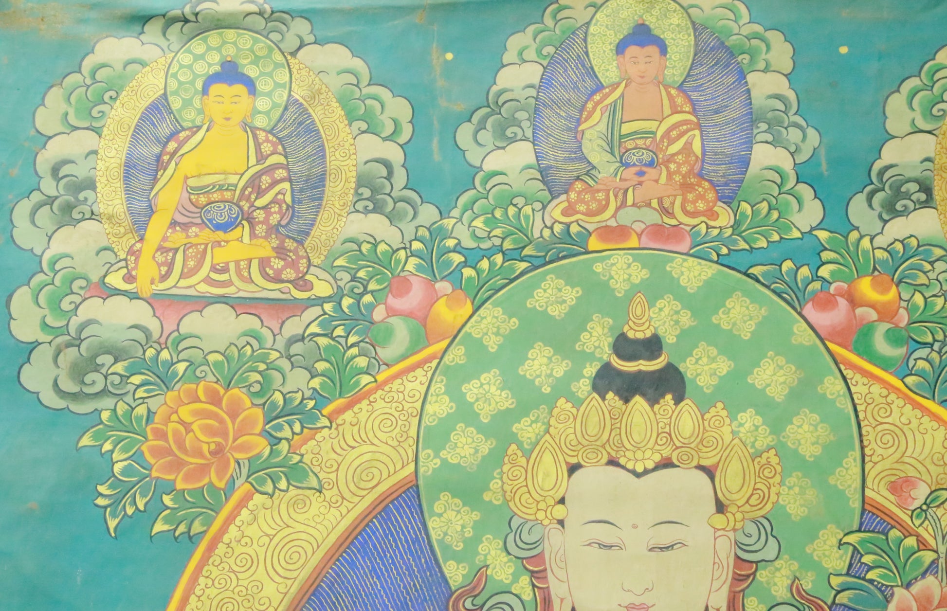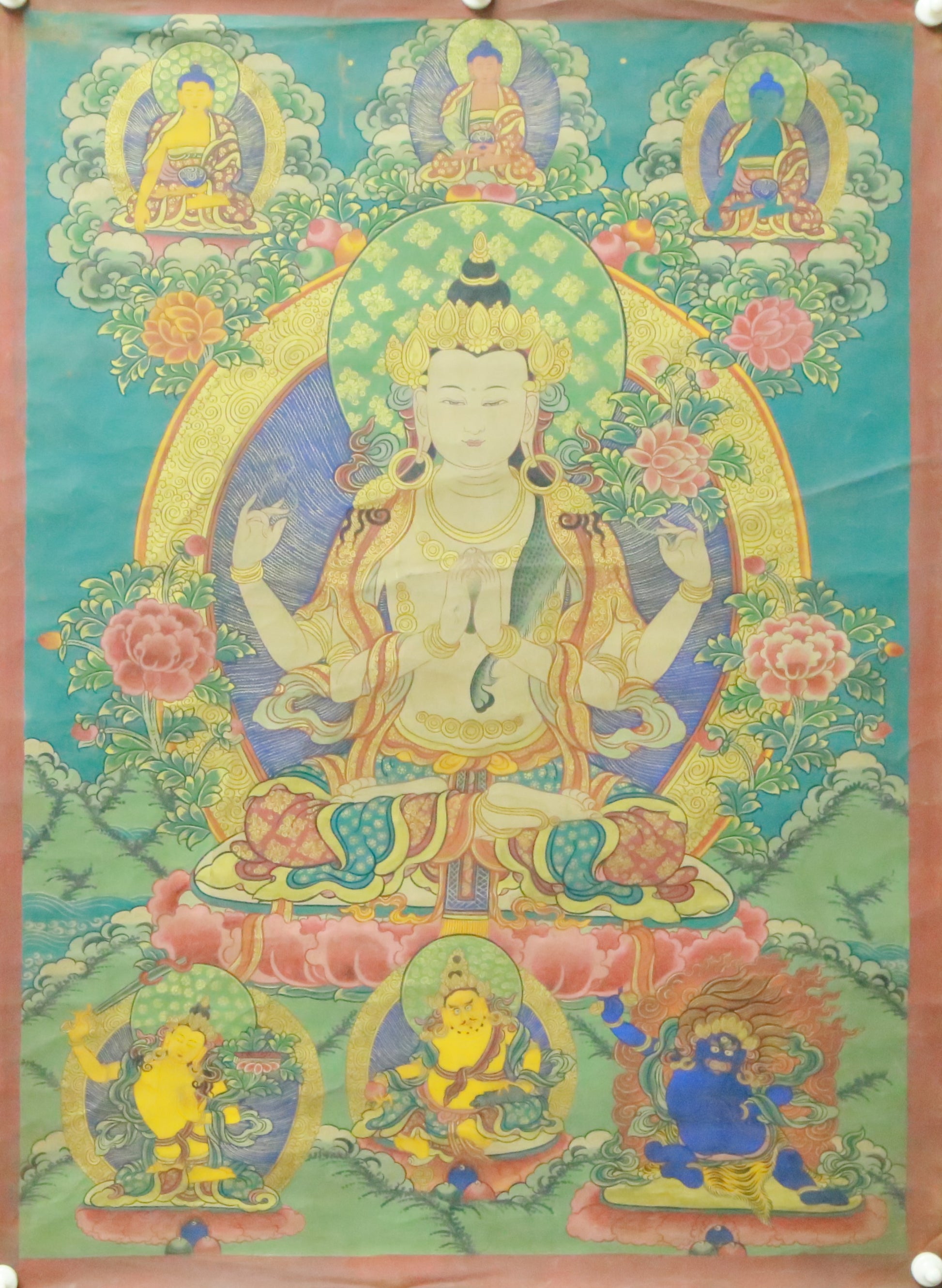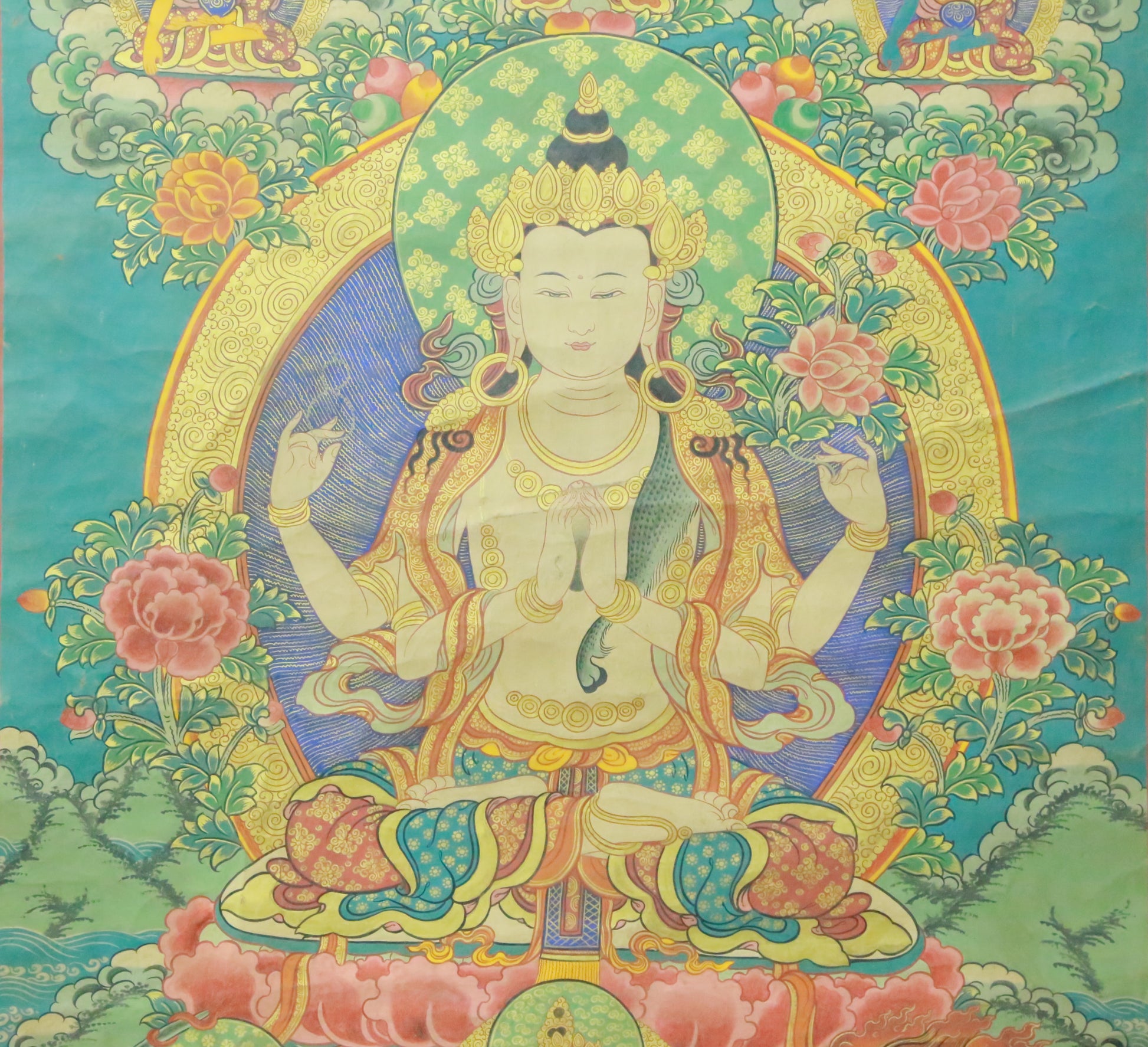 An Exquiste Painted Gold Four-Armed Avalokiteshvara Thangka