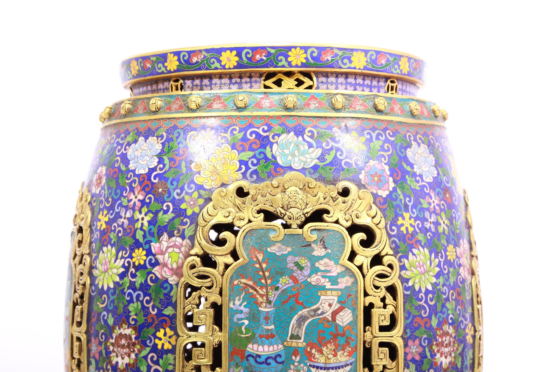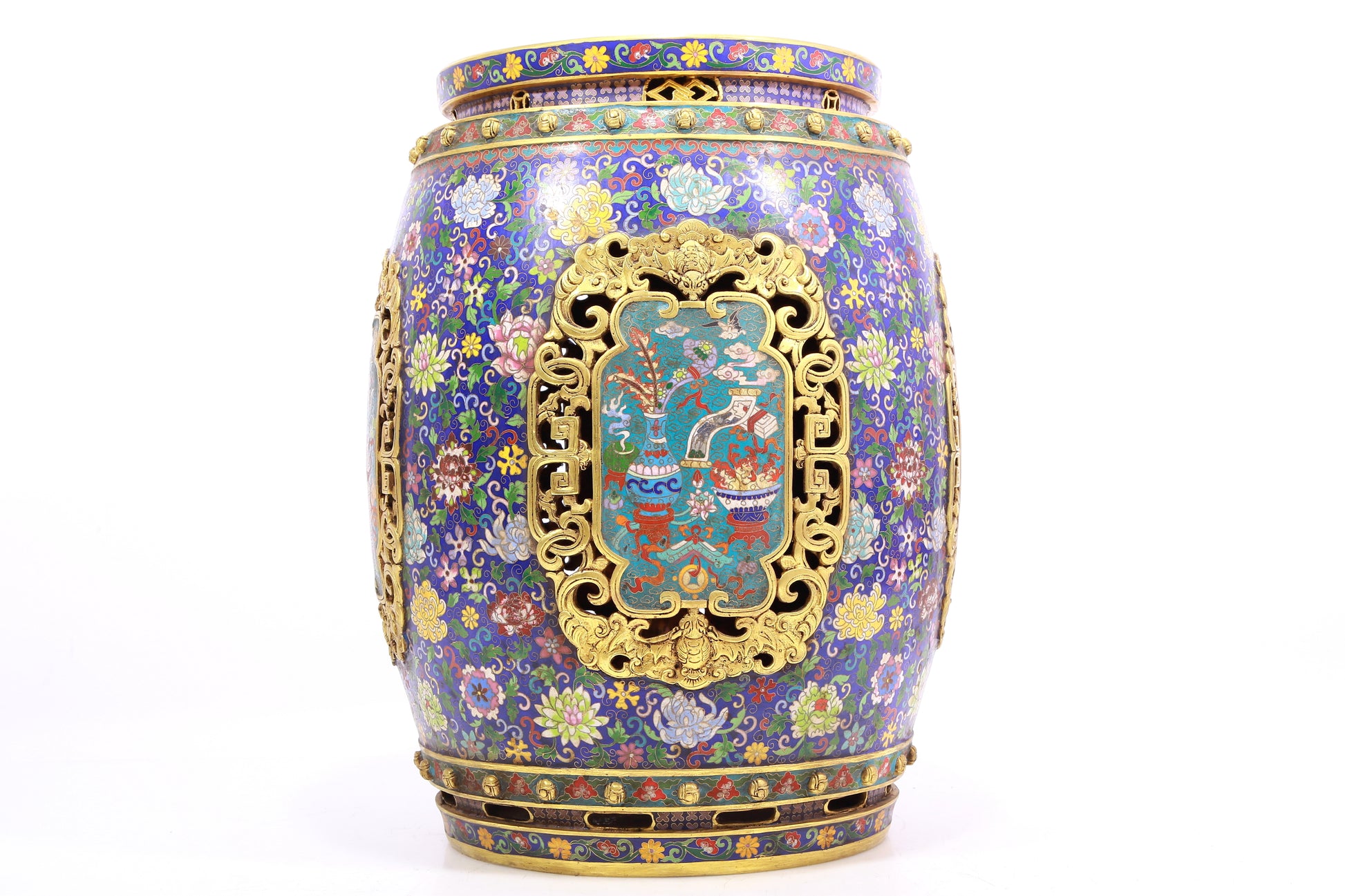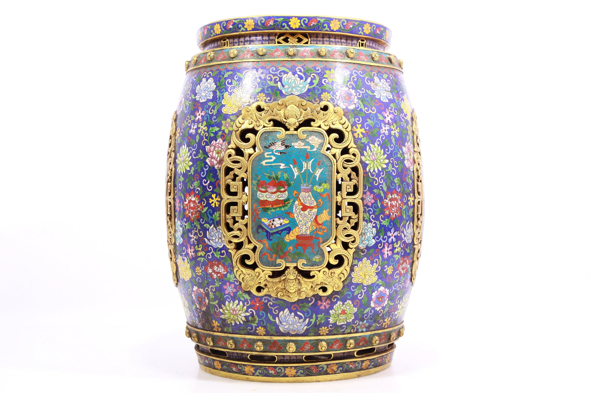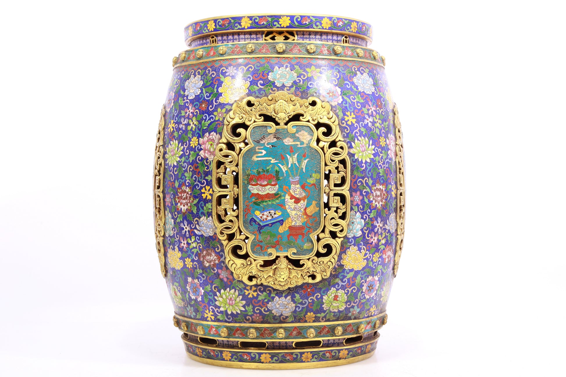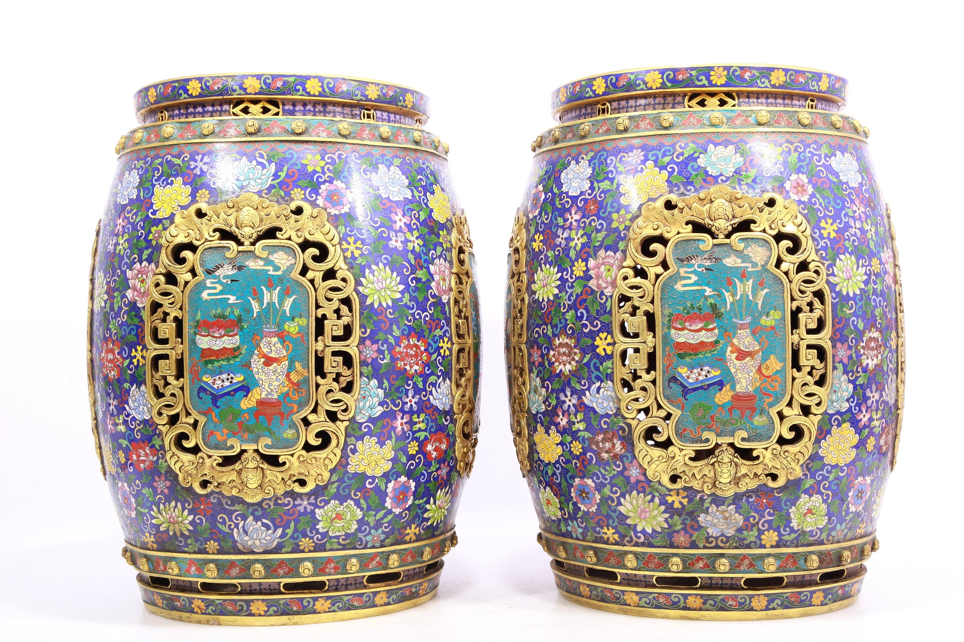 Pair of cloisonné 'Flower and Lion' pattern stools