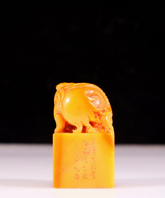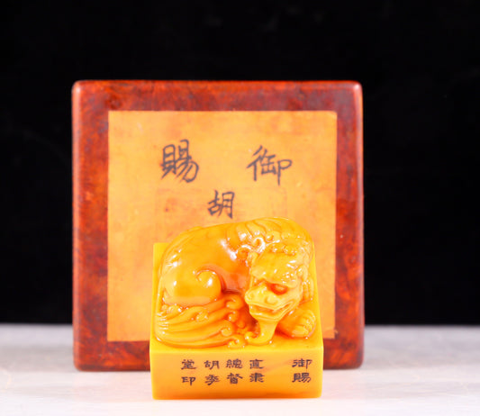 An exquisite Tianhuang stone seal with auspicious animal patterns