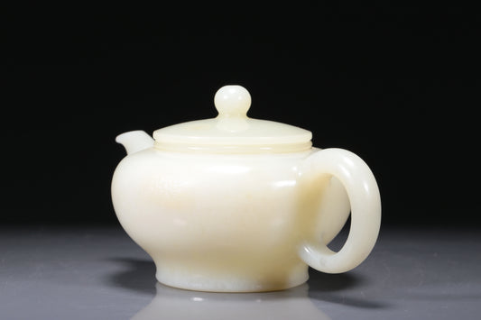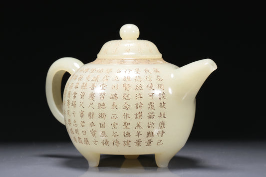 A Brilliant Imperial White Jade 'Poem' Teapot With A Cloisonne 'Scrolling Lotus& Dragon' Overhead Handle