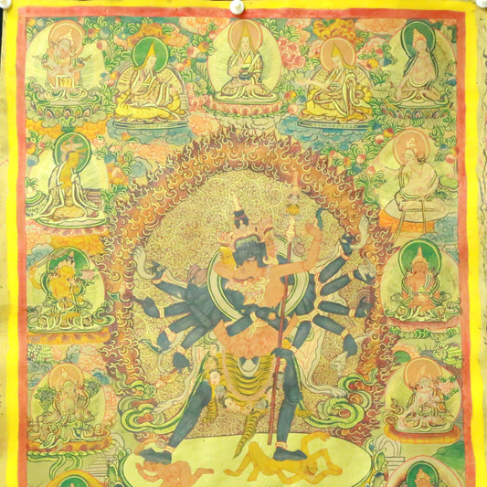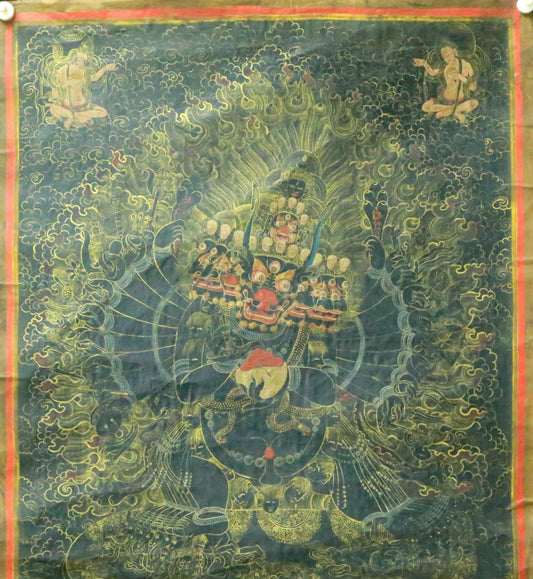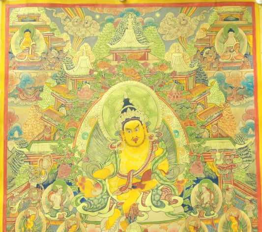 An Exquiste Painted Gold Mammon Cowhide Thangka