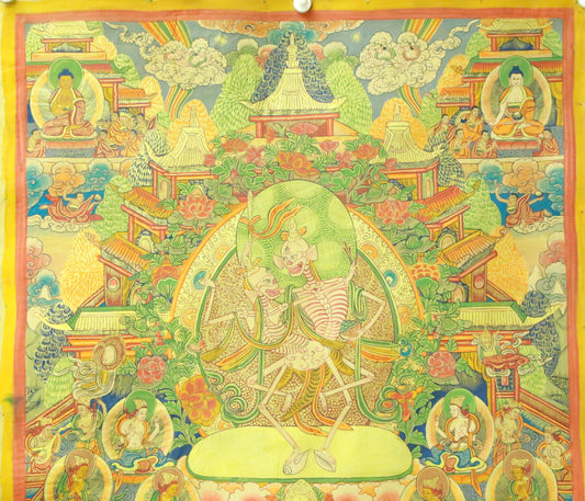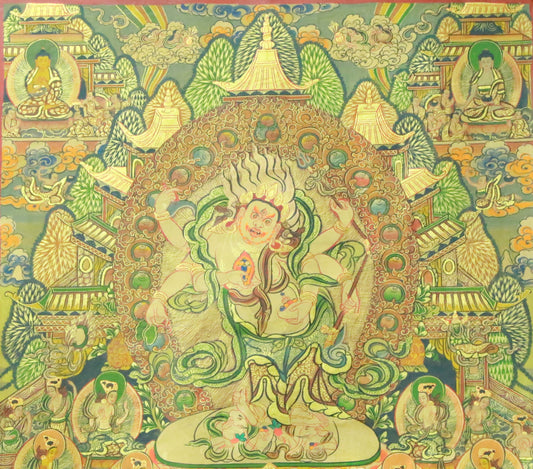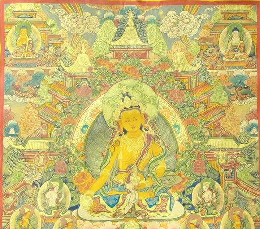 An Exquiste Painted Gold Vajra Thangka
