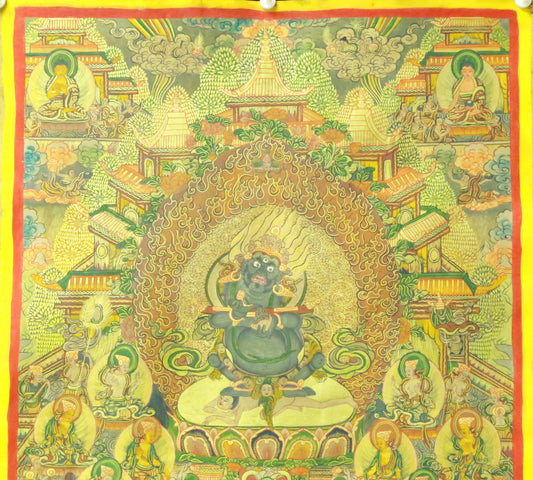 An Exquiste Painted Gold Mahakala Thangka