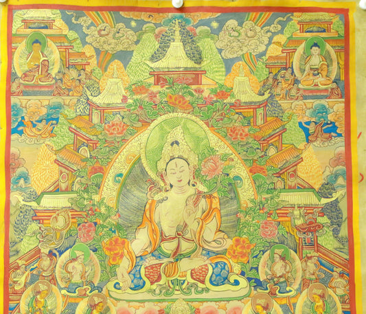 An Exquiste Painted Gold White Tara Thangka