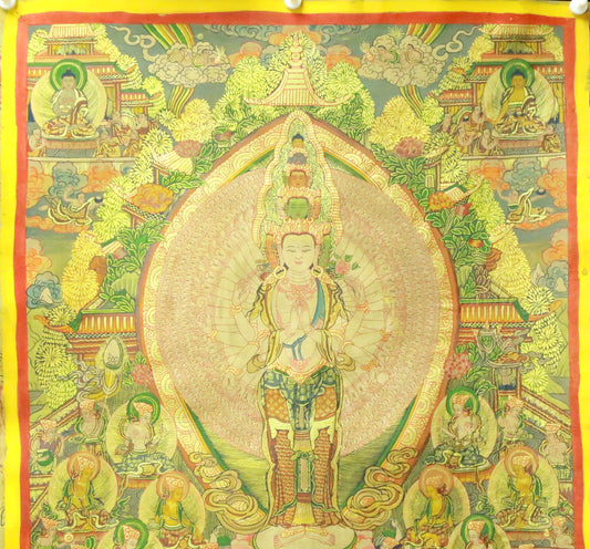 An Exquiste Painted Gold Thousand-armed Avalokiteshvara Thangka