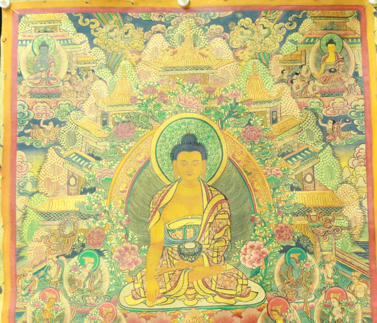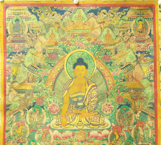 An Exquiste Painted Gold Gautama Buddha Thangka