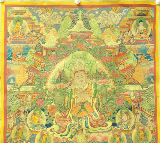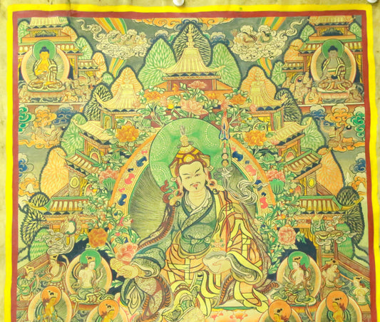 An Exquiste Painted Gold Padmasambhava Thangka