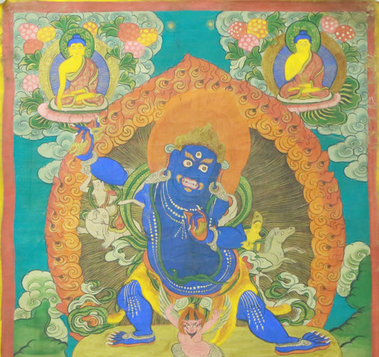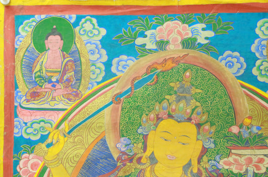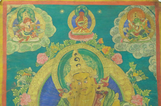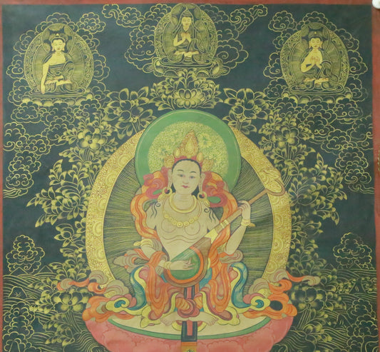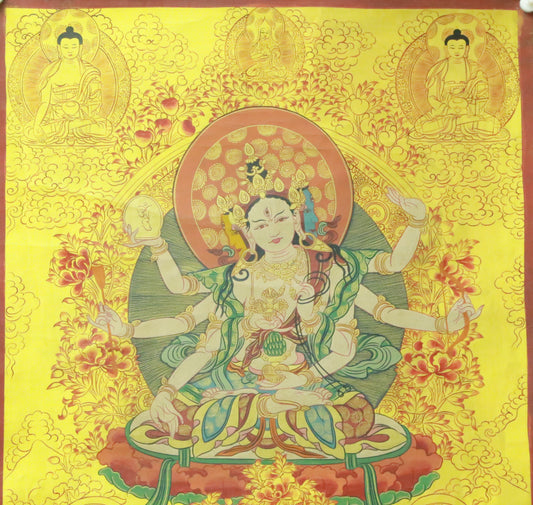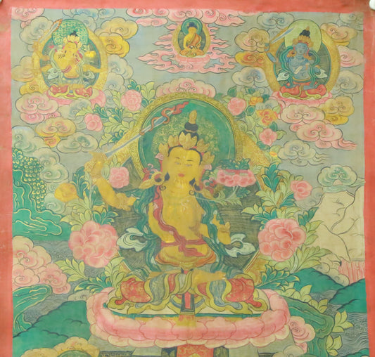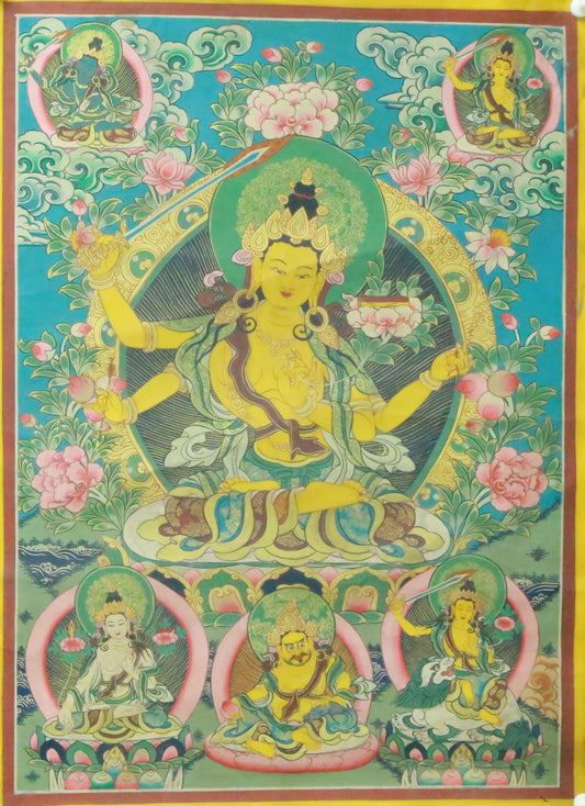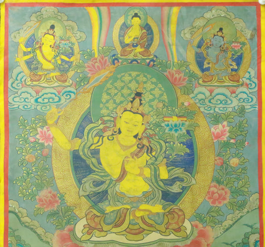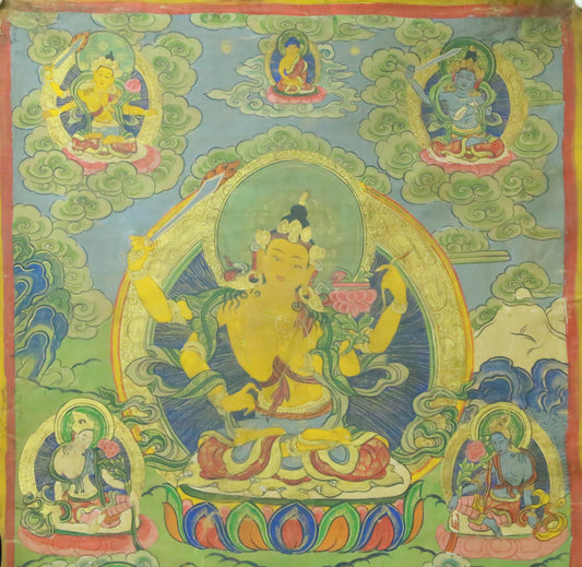 An Exquiste Painted Gold Manjushri Bodhisattva with Four Arms Thangka