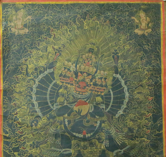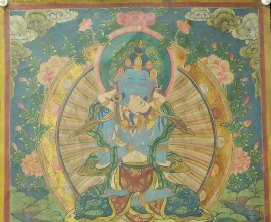 An Exquiste Painted Gold Thousand-armed Avalokiteshvara Thangka