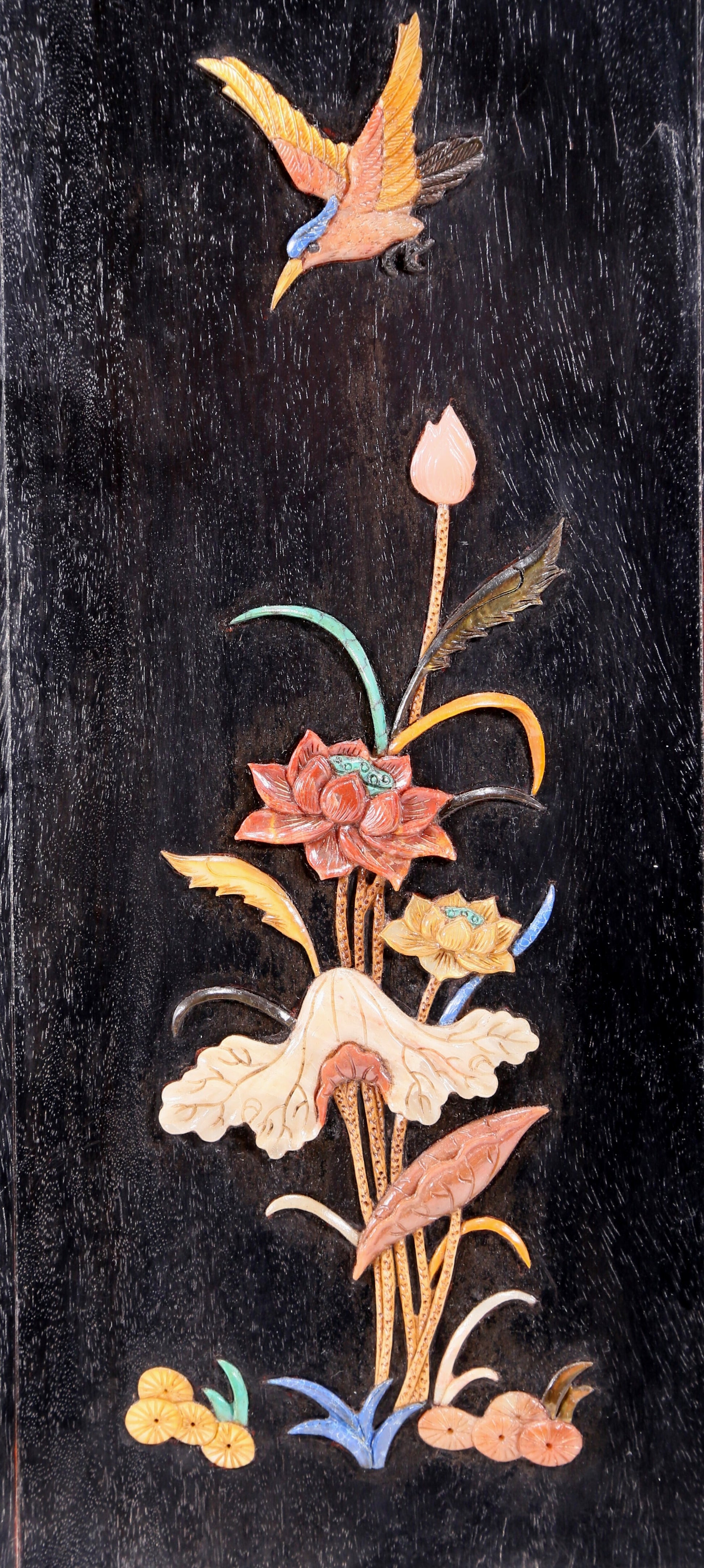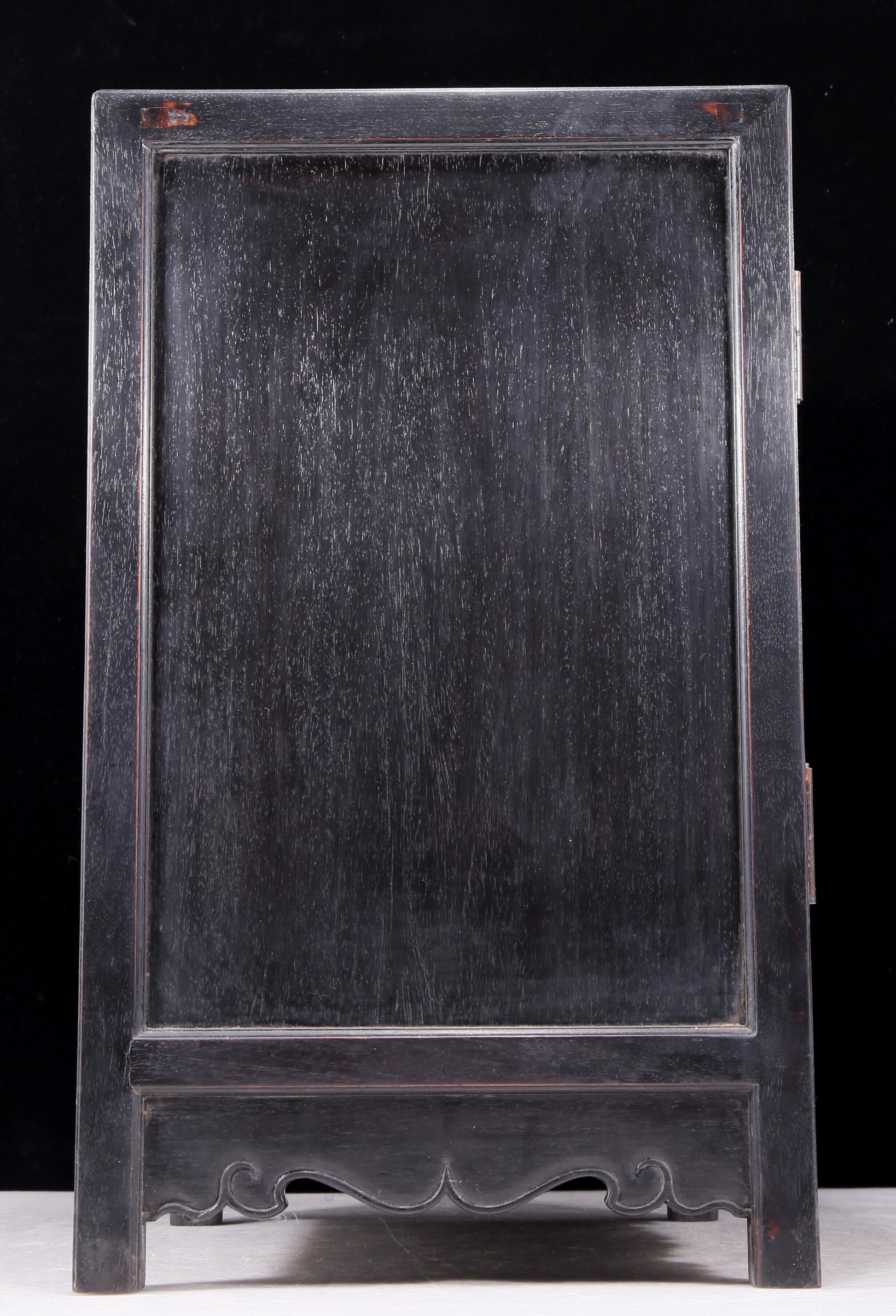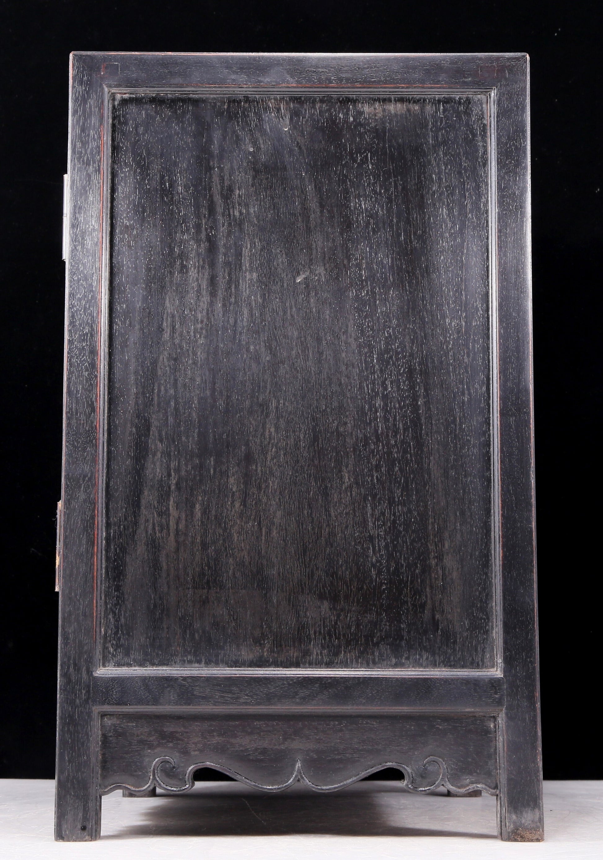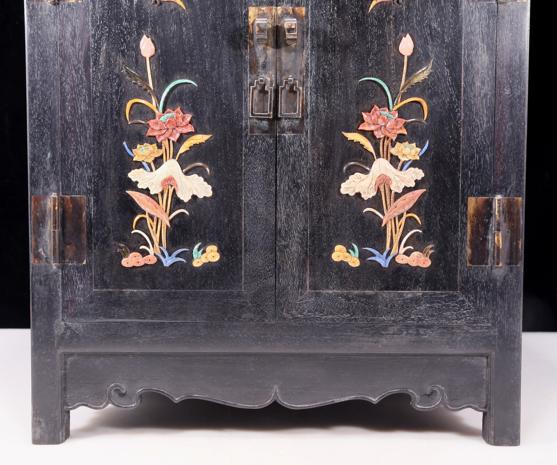 An exquisite zitanwood cabinet with inlaid gemstones and flower and bird patterns