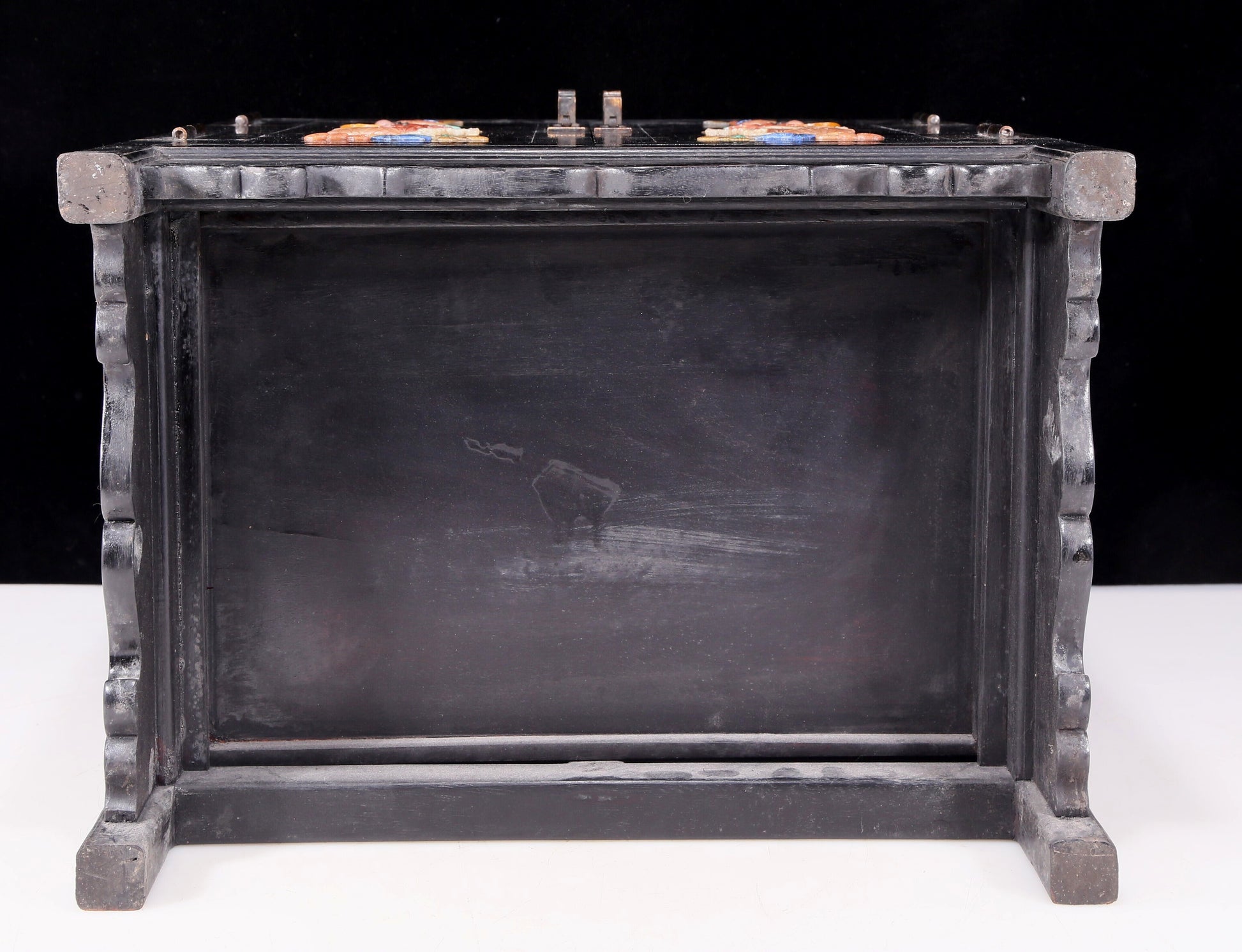 填漆工艺的精湛表现在柜子上的图案,每一处细节都展现着匠人的高超技艺。宝石的嵌入为画面增色不少,犹如珠光宝气点缀在花鸟之间,为整体作品增添了华贵和瑰丽的氛围。