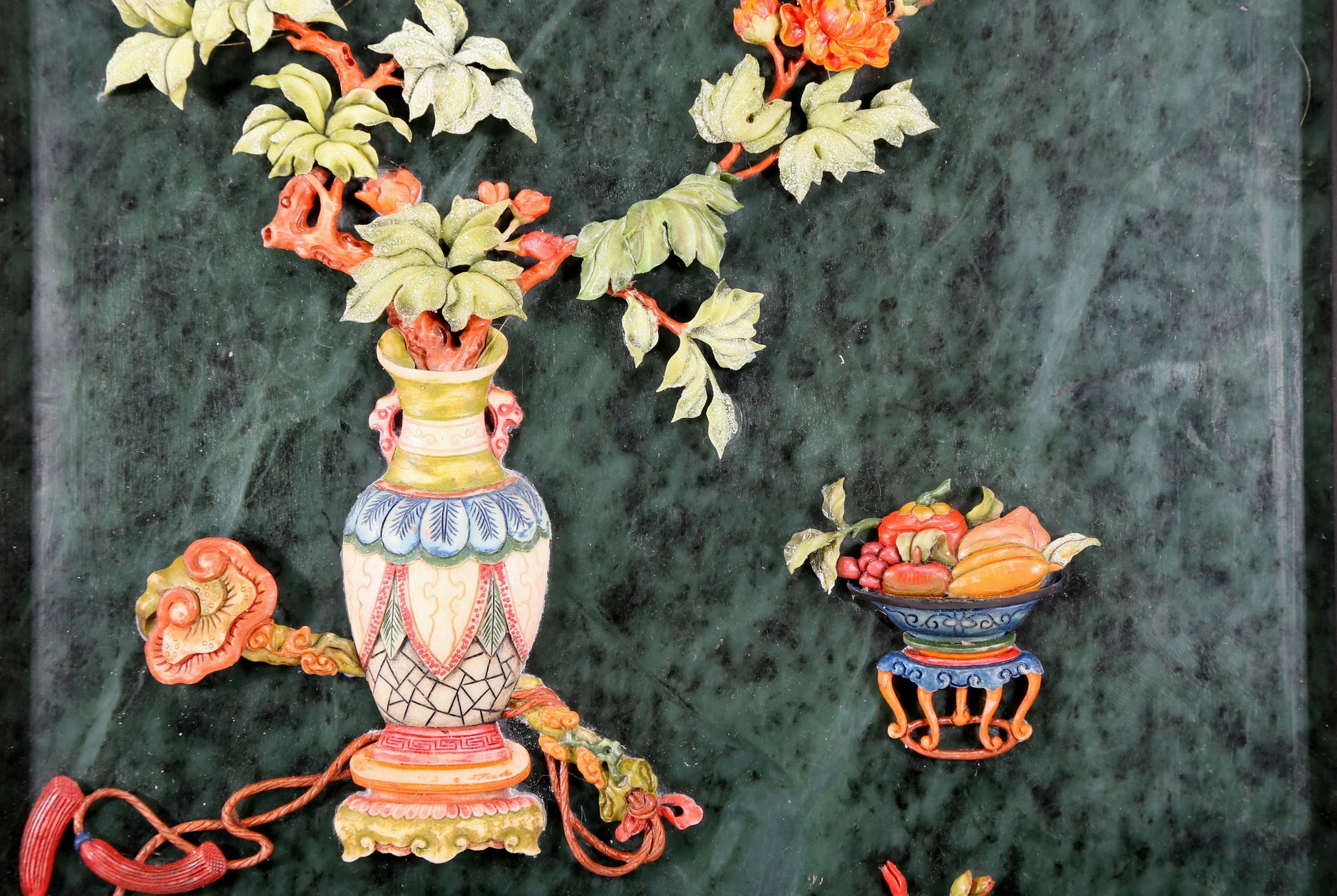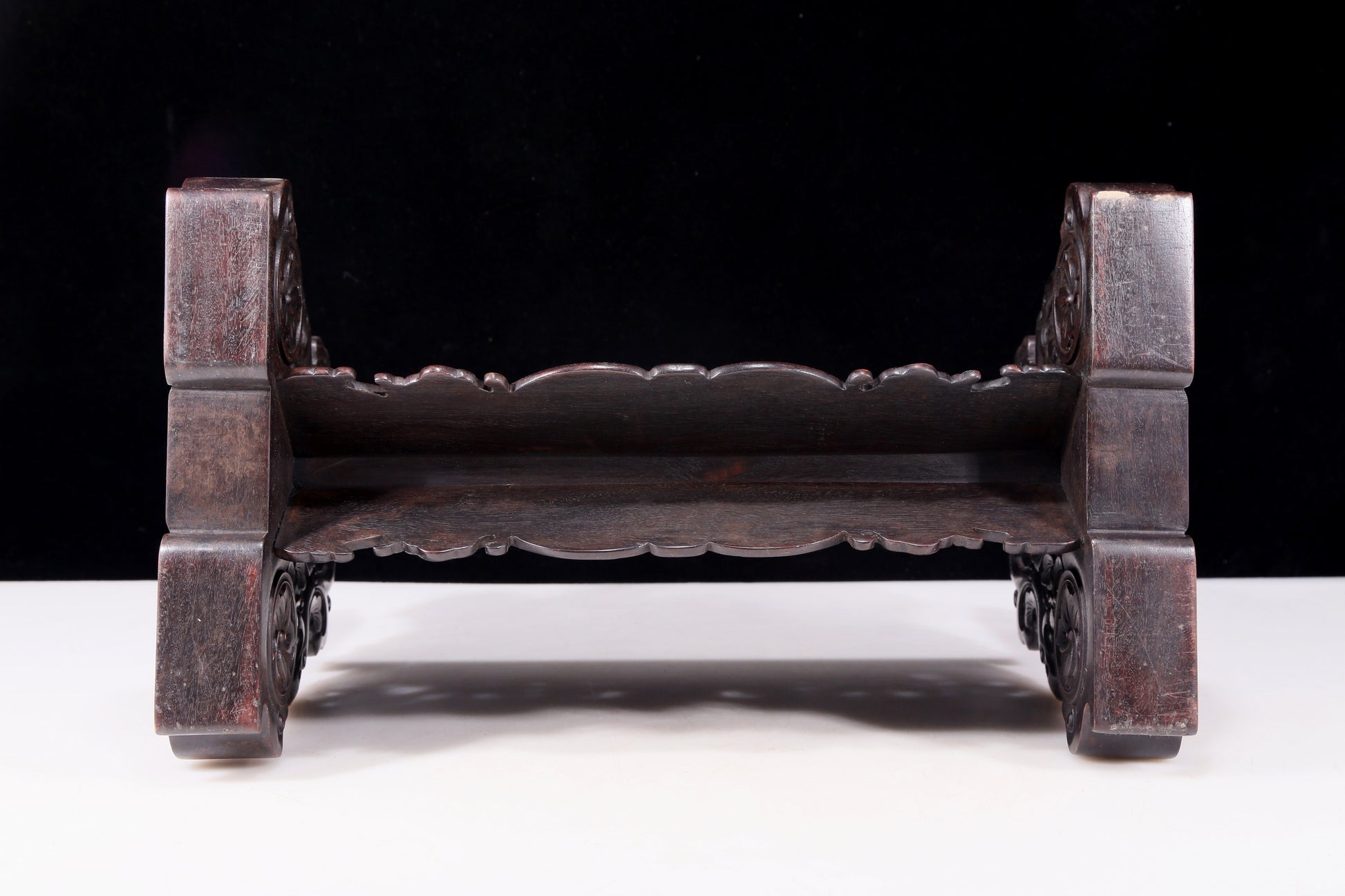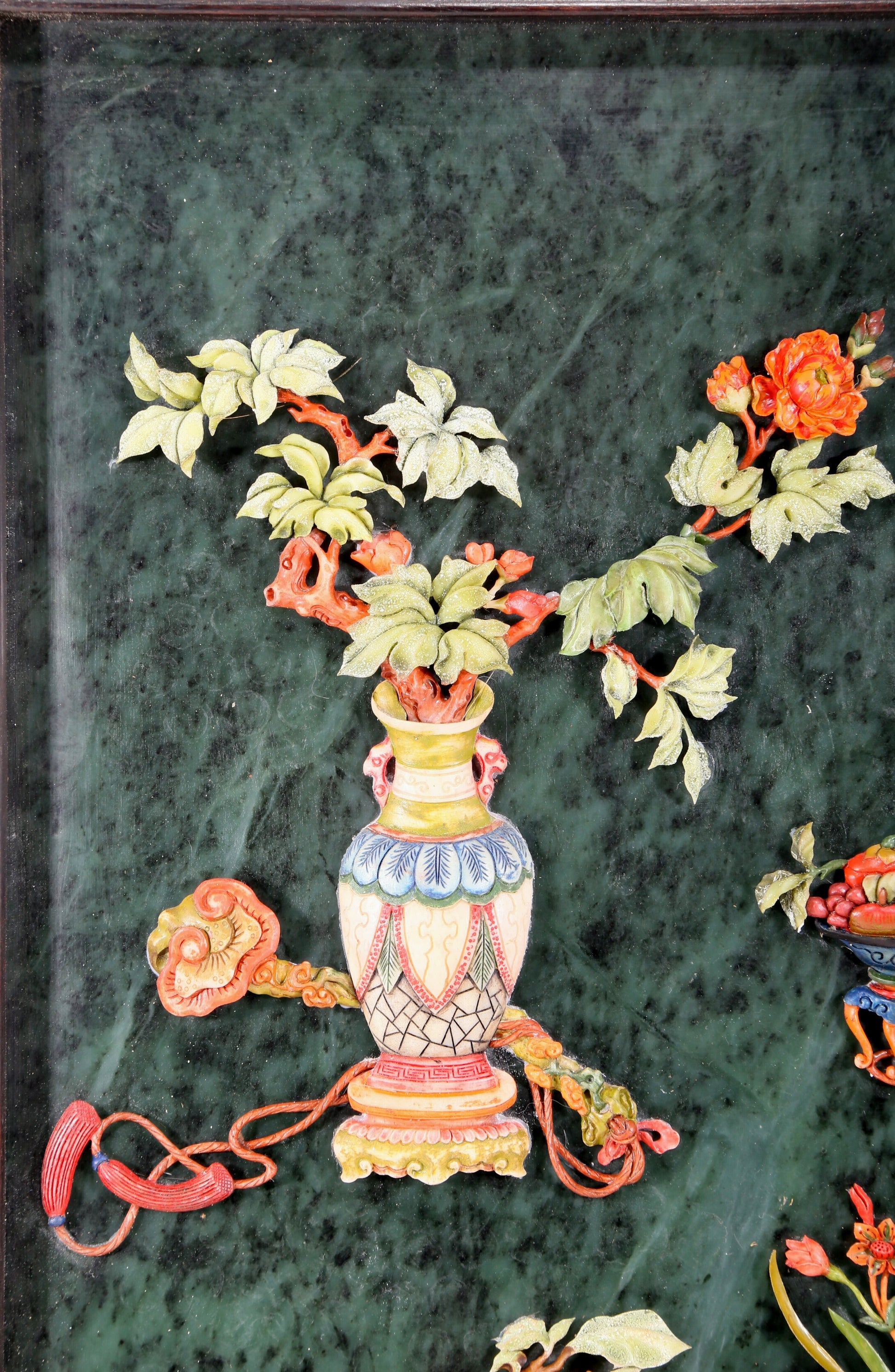 An exquisite zitanwood inlaid with jasper and gold inlaid gemstone vase pattern table screen