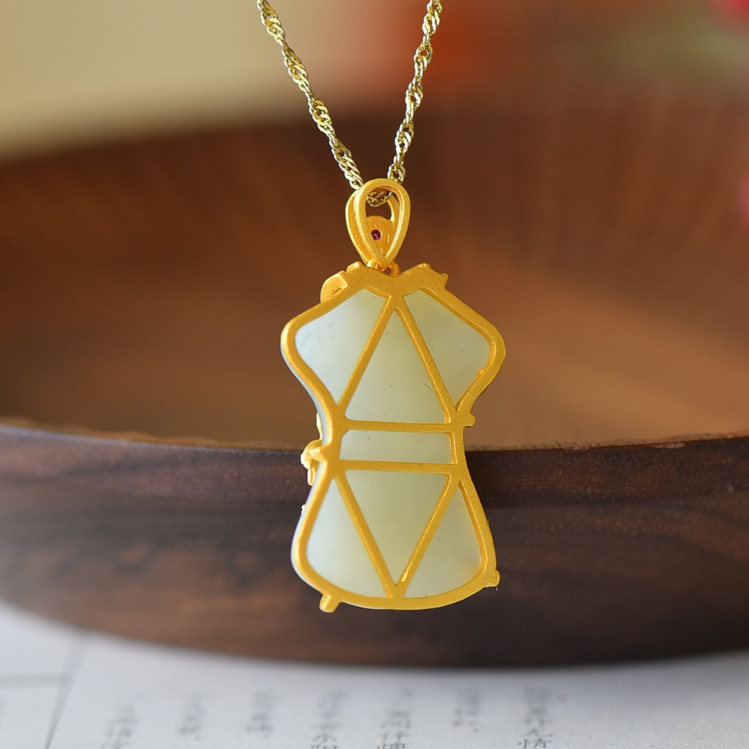Gilt silver cheongsam pendant inlaid with Hetian jade