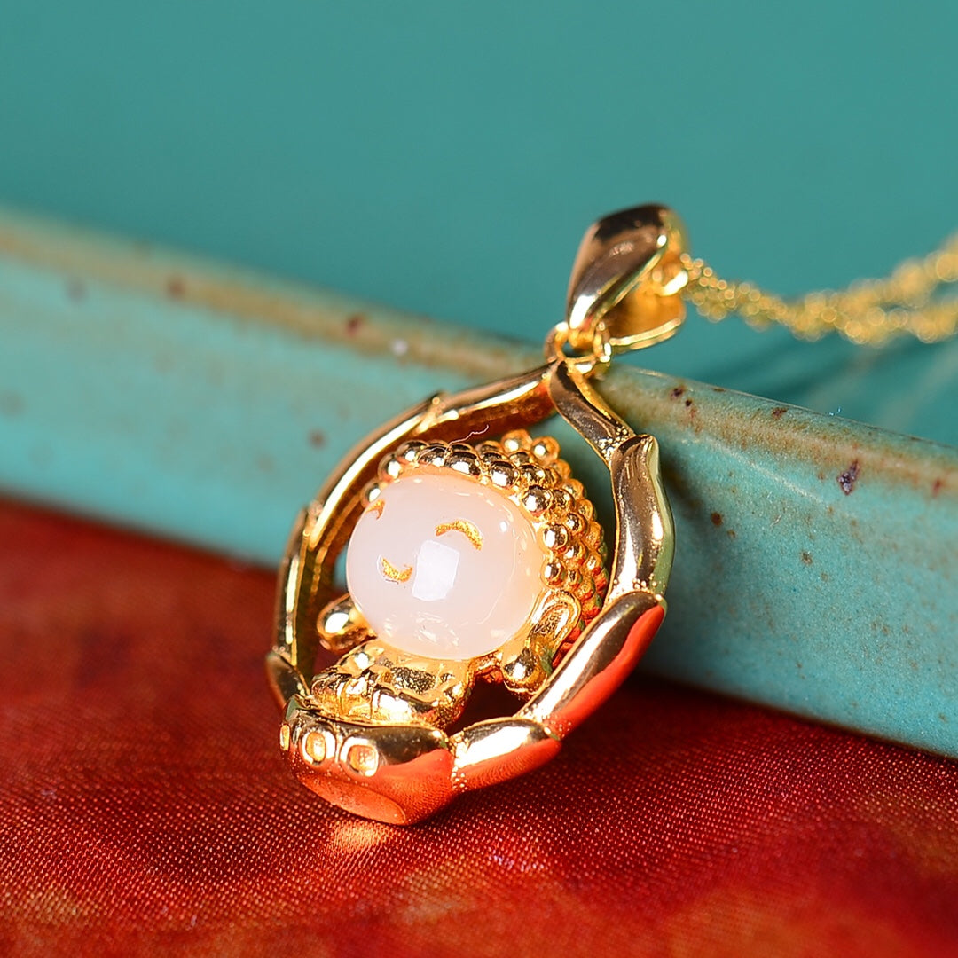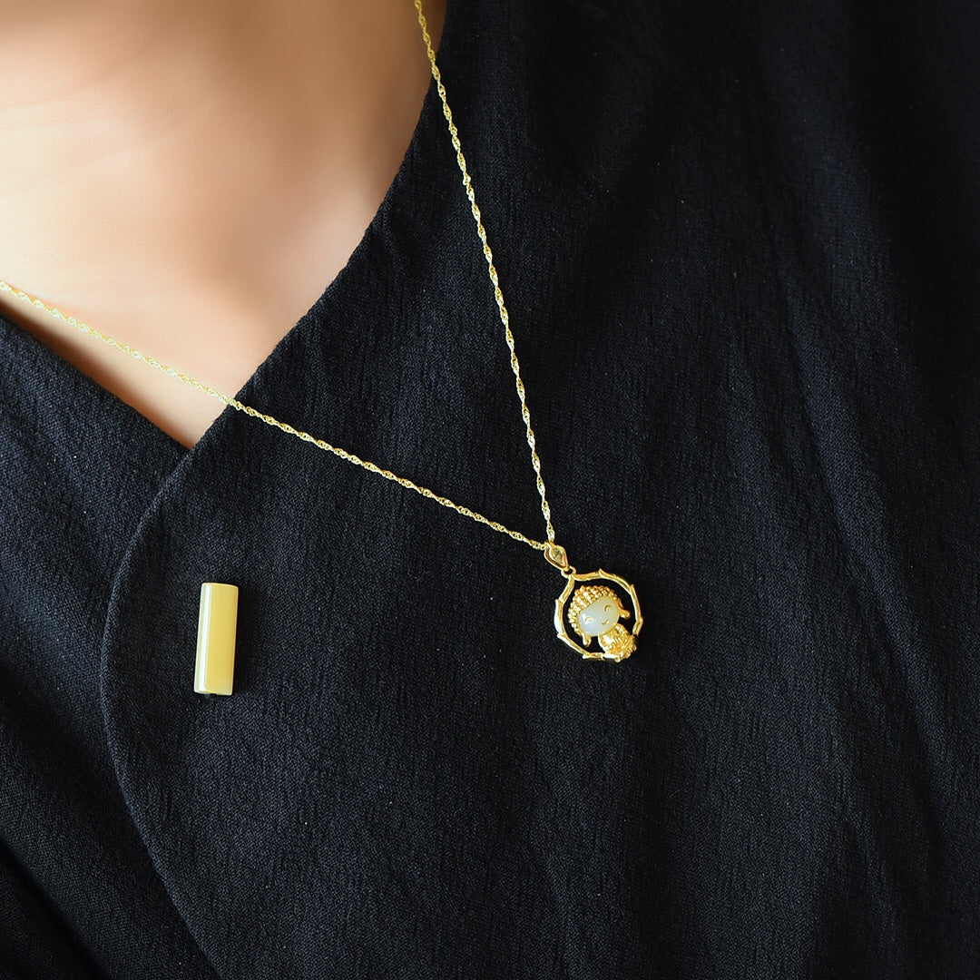 Gilt silver inlaid Hetian jade baby Buddha pendant