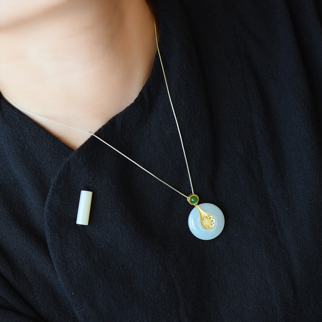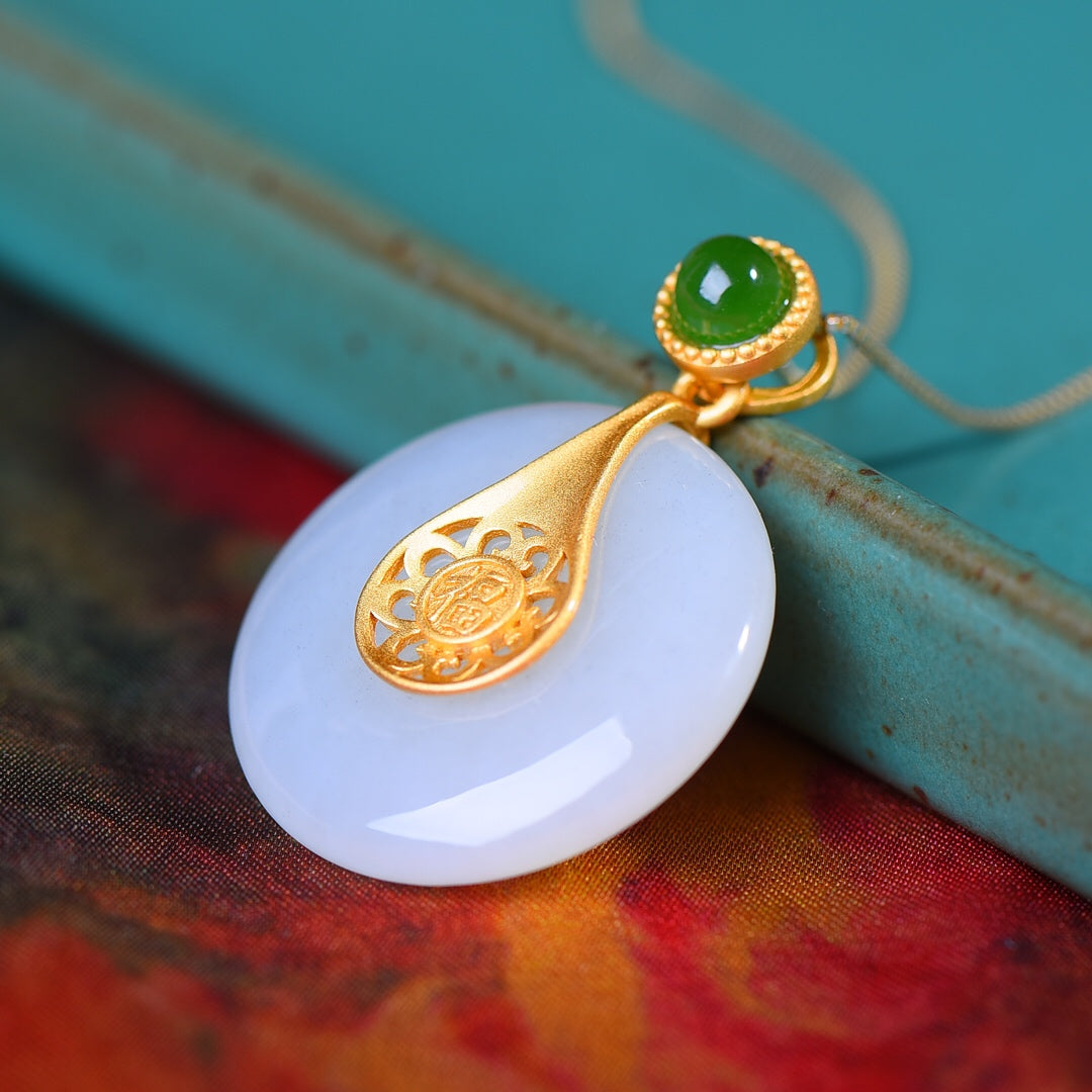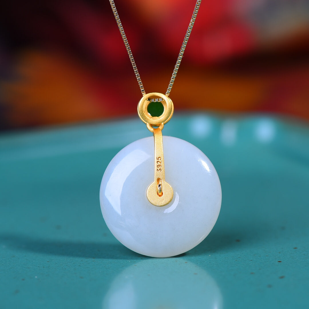 Gilt silver inlaid Hetian jade peace buckle pendant
