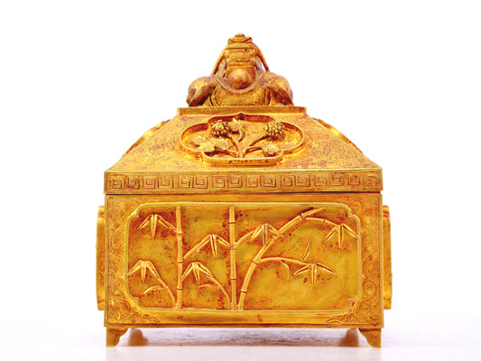 A gilt bronze Buddha box with floral and dragon patterns