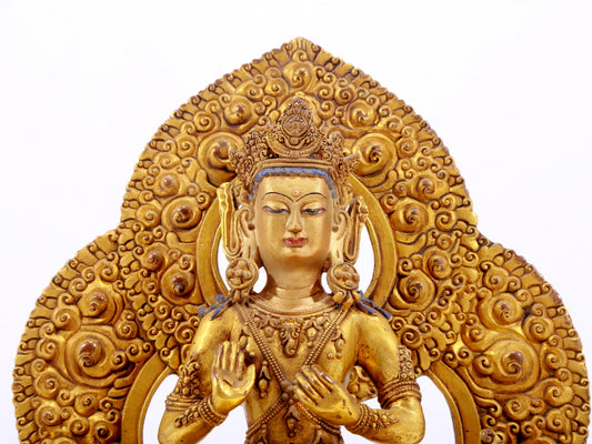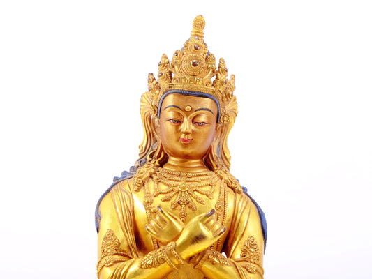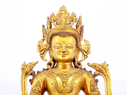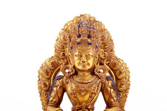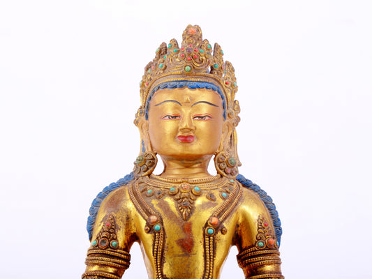 A gilt bronze statue of Amitayus Buddha inlaid with hundreds of treasures