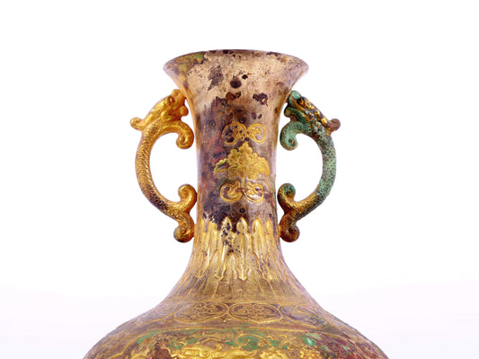 A gilt bronze amphora with lotus and dragon patterns